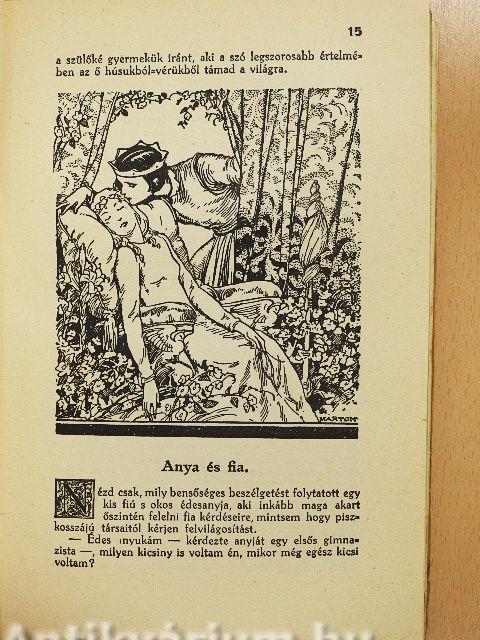 | Megjegyzés: | Márton L. fekete-fehér rajzaival illusztrálva. A borító grafikája is Márton L. munkája. Tizenötödik-tizenkilencedik kiadás. Nyomtatta a Stephaneum nyomda r. t., Budapest. A szerző ezt a könyvet a Budapesti Nemzetközi Eucharisztikus Kongresszus és a Szent István Jubileumi év lelki hatásának elmélyítése tízezer példányban ajándék gyanánt adja a magyar ifjúságnak. |