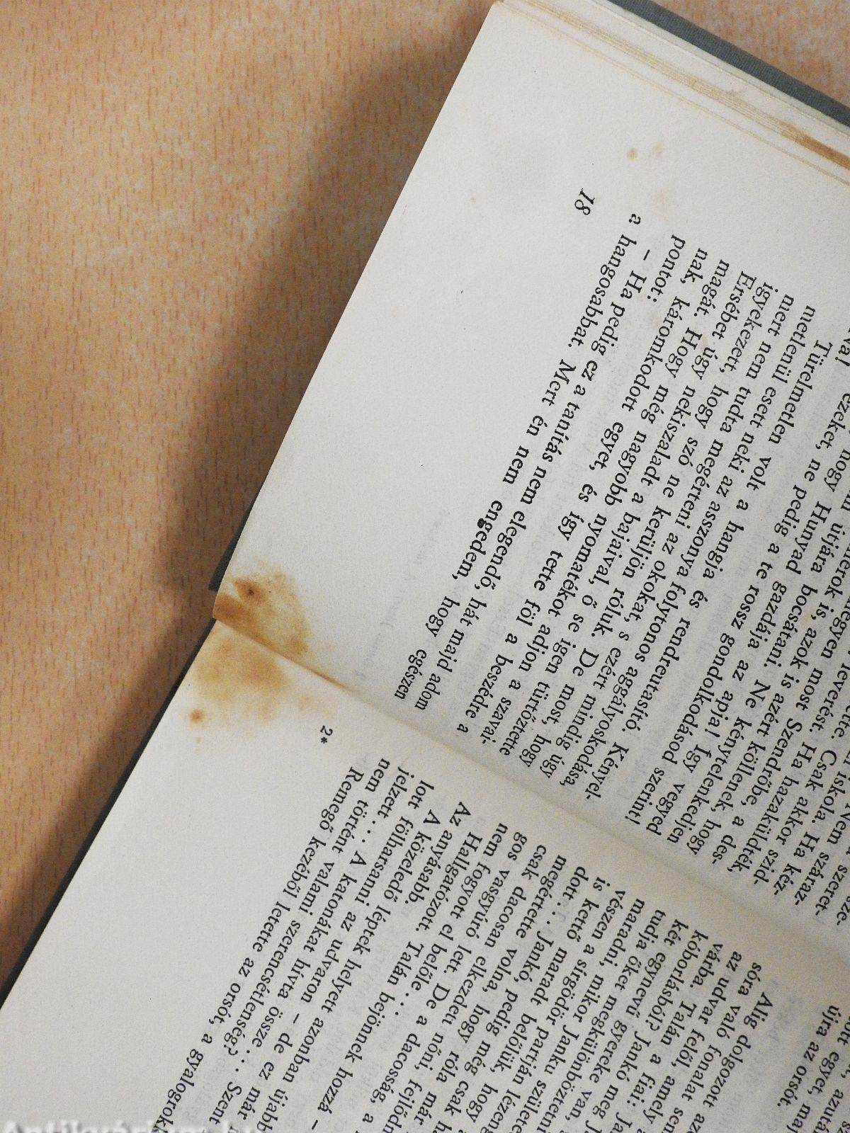 A borító és a lapélek elszíneződtek. A borító enyhén kopott, foltos.