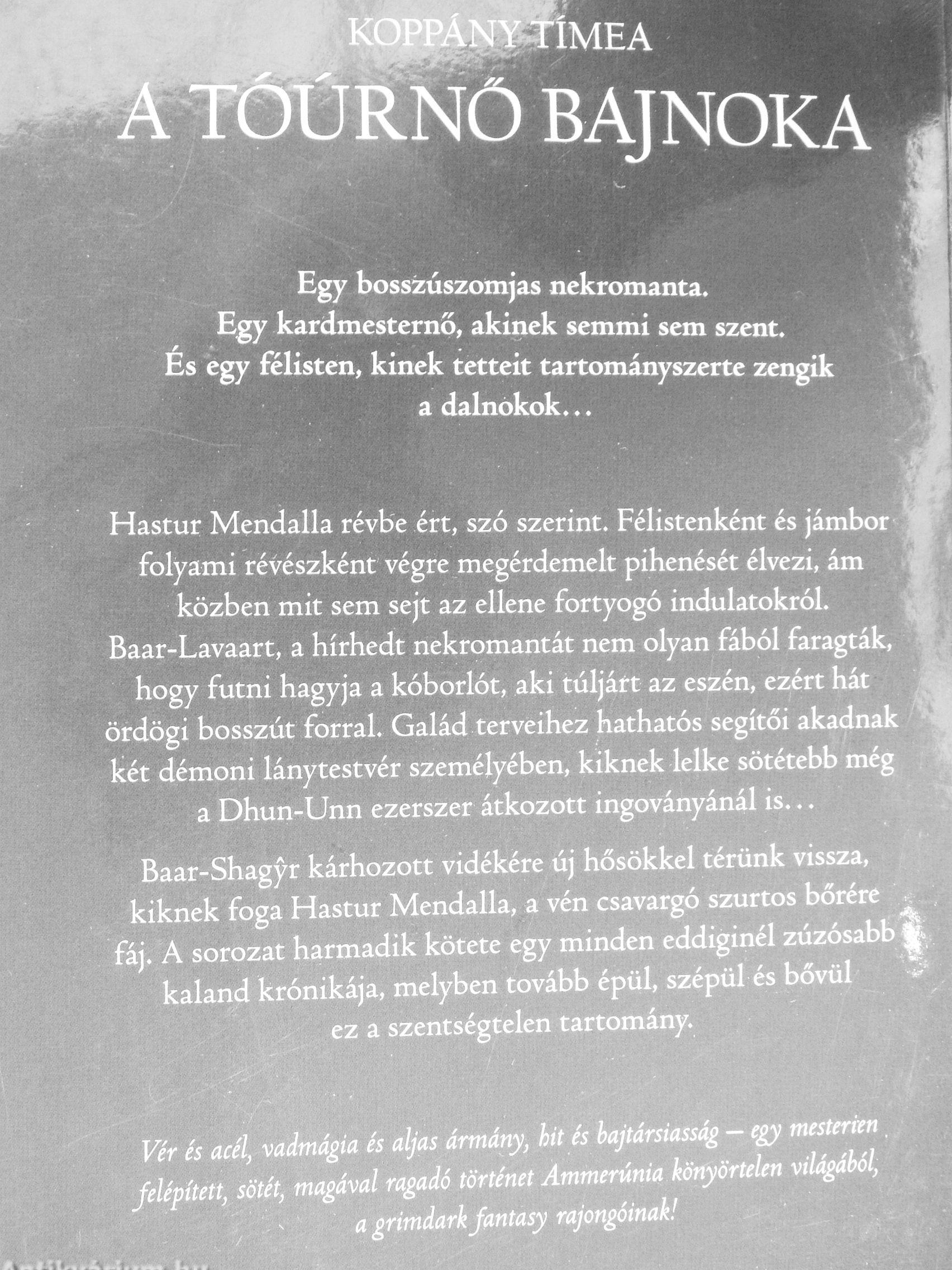Baar-Shagyr kárhozott vidékére új hősökkel térünk vissza, kiknek foga Hastur Mendalla, a vén csavargó szurtos bőrére ^^ fáj. A sorozat harmadik kötete egy minden eddiginél zúzósabb J