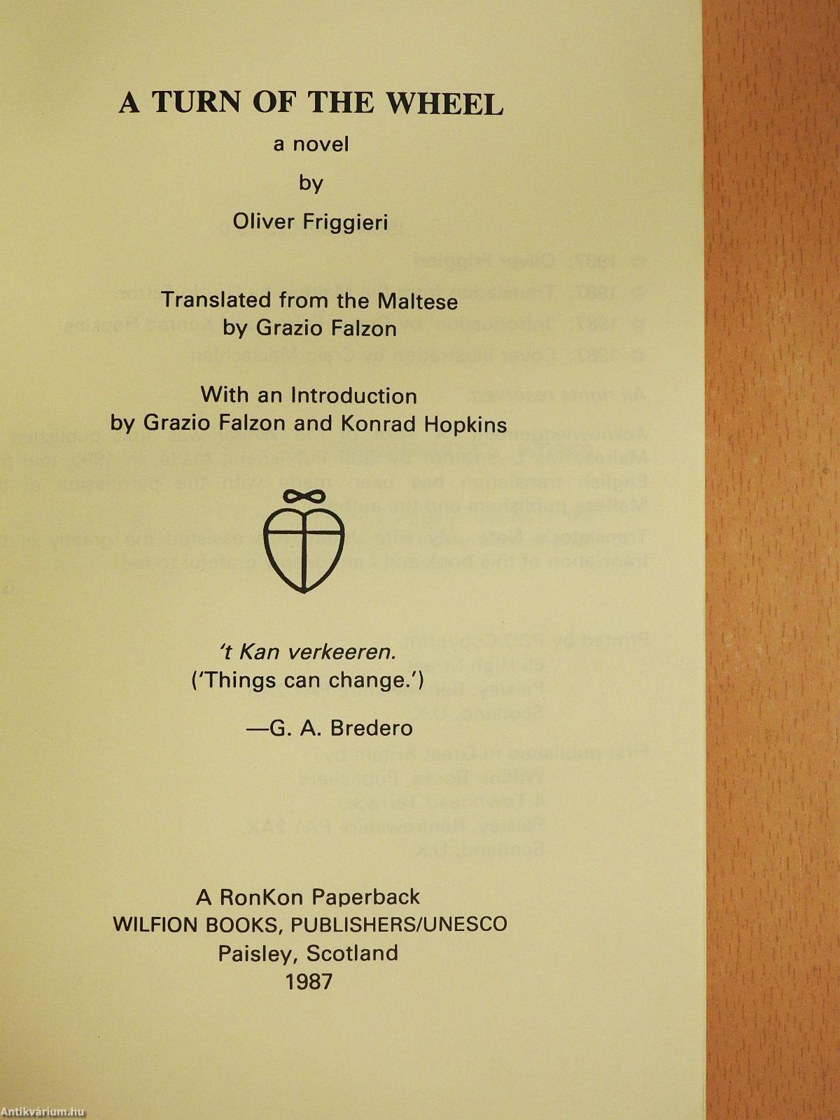 A Turn of the Wheel by Oliver Friggieri Translated from the Maltese by Grazio Falzon Introduction by Grazio Falzon and Konrad Hopkins Cover Illustration by Craig Maclacblan