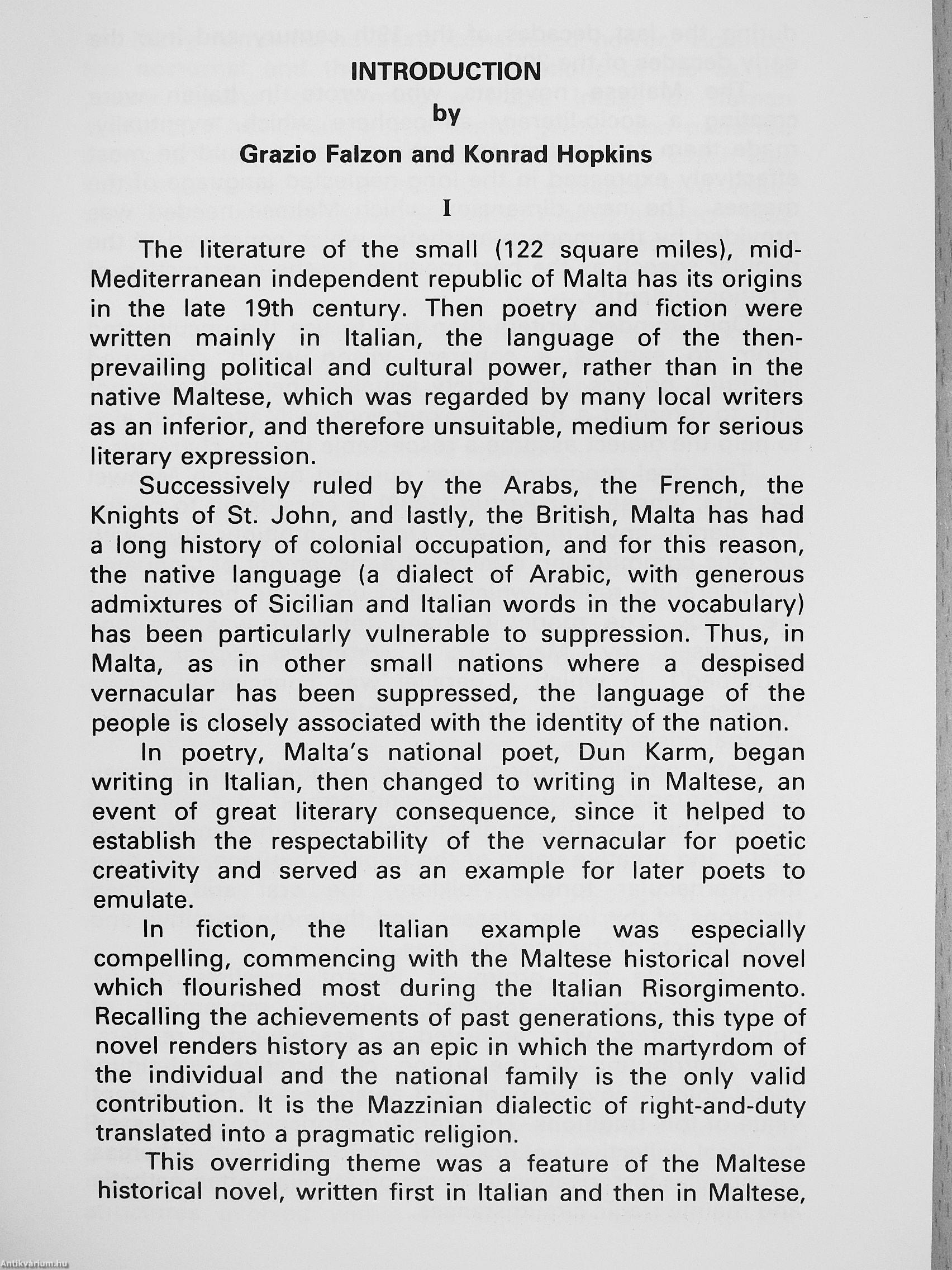GRAZIO FALZON, a Maltese-born Professor in the Department of Humanities at Pacific University, Forest Grove, Oregon, U.S.A., is a widely known translator of Malteáe literature into English and French.