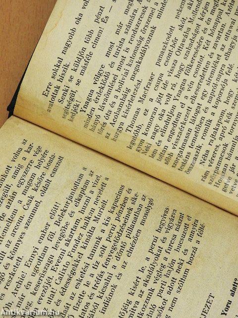 Az utasok keresgélni kezdtek a táskáik, bőröndjeik között. Hallgatag, furcsa népség volt, nem szívesen ismerkedtem volna meg velük, ők se figyeltek rám, egyszerűen nem vettek észre. Mégis csodálkozva bámultam át rájuk, amikor láttam, hogy előszedik esőköpenyeiket, gummitakaróikat és kaucsukcsuklyákat húznak a kalapjaik fölé.