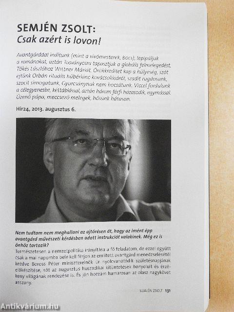 Emlékeznek a vak komondorra, és Terikére, Szabikára? És az utóbbi huszonöt év legerősebb mondatára, ami Simicska Lajos ajkát hagyta el a C-napon? Rémlik, ahogy Puch László elzavarta Gyurcsány Ferencet az MSZP-ből, és ahogy Ángyán József hadat üzent Orbán Viktornak? Széles Gábor energiacellája és ufóhite megvan még? És ahogy Vona Gábor kibökte, hogy a cigányozás és a zsidózás nem vezet sehová? És hogy a Fradi kápója szerint cigányozni nem rasszizmus? Volna merszük megsérteni Csányi Sándort? Egyáltalán, tisztában vannak vele, mivel lehet? Elgondolkodtak azon a Kövér Lászlótól származó vallomáson, hogy a rendszerváltás „el lett fuserálva"?
