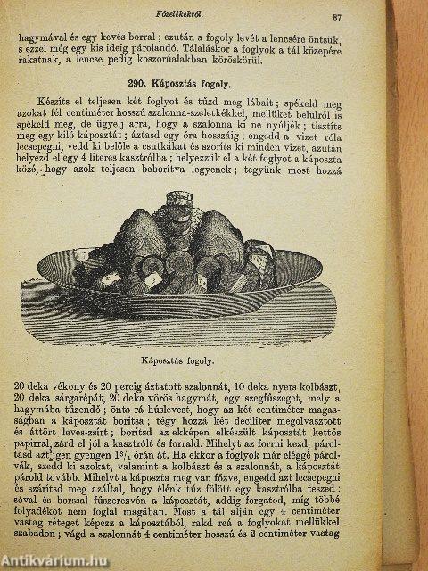 | Megjegyzés: | Számos, a szöveg közé nyomtatott fekete-fehér ábrával illusztrálva. Saját sokszori kisérletek után érthetően és pontosan leirta és kiadta St. Hilaire Jozéfa. Huszonkilencedik, a legújabb szakácsvényekkel, a felszeldelés mesterségével, valamint a modern asztal terítésével bővített kiadás. Gondosan átdolgozta és bővítette Wiesner Emil, konyhafőnök, az Orsz. Nőképző-egyesület főzőiskolájának tanára. Nyomtatta az Athenaeum r.-t. könyvnyomdája, Budapesten. |