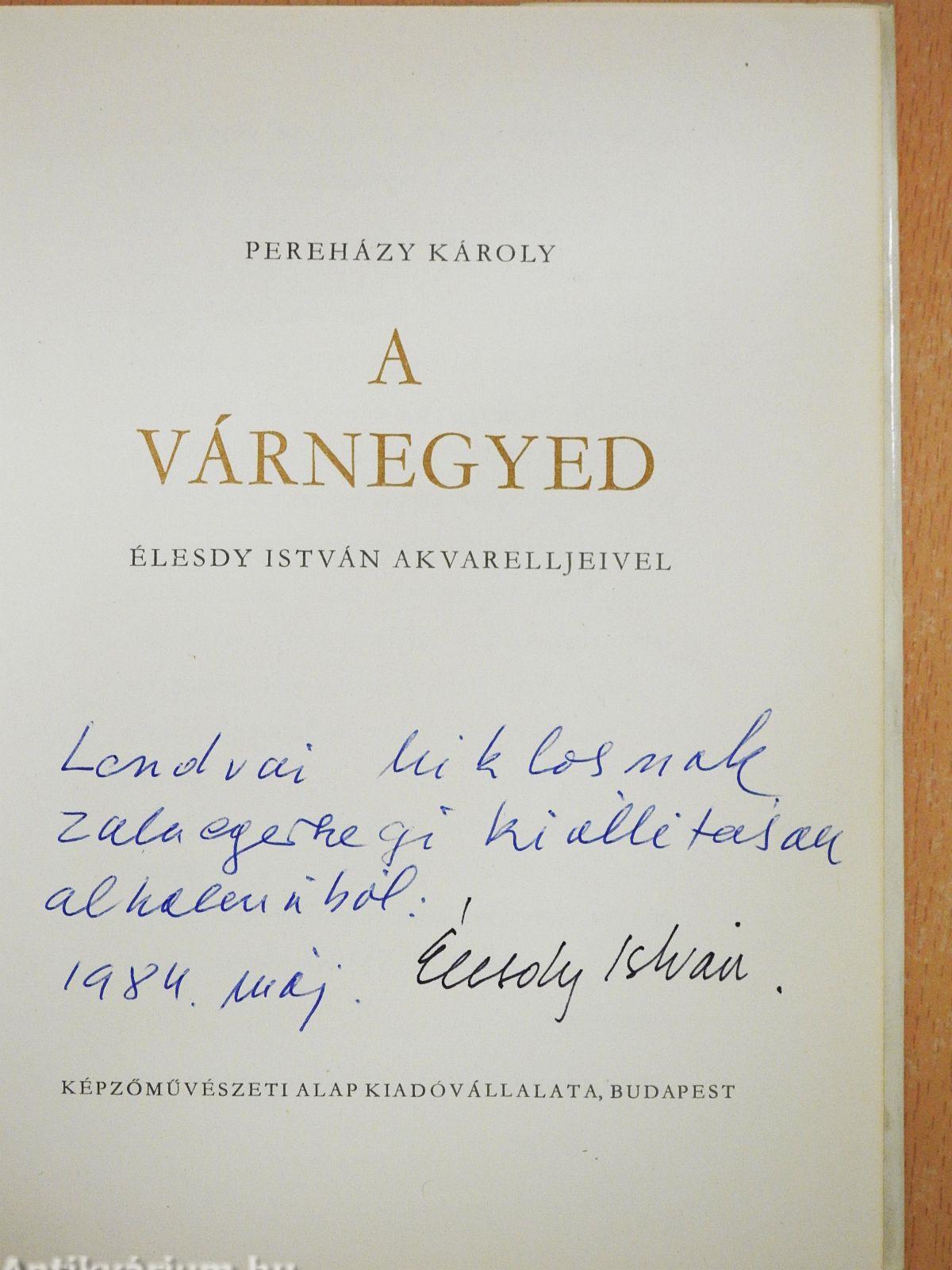 | Megjegyzés: | Élesdy István festőművész által dedikált példány. Élesdy István színes akvarelljeivel. A kötetben angol, francia, német és cseh nyelvű összefoglalás és képjegyzék is található. |