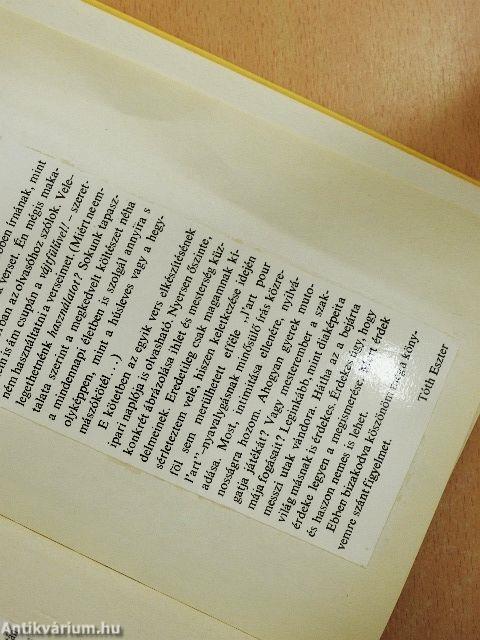 Manapság mintha többen írnának, mint ahányan olvasnak verset. Én mégis makacsul elsősorban az olvasóhoz szólok. Vele - és nem is ám csupán a vájtfülűvel! - szeretném használtatni a verseimet. (Miért ne emlegethetnénk használatot? sokunk tapasztalata szerint a megkedvelt költészet néha a mindennapi életben is szolgál annyira s olyképpen, mint a húsleves vagy a hegymászókötél...)