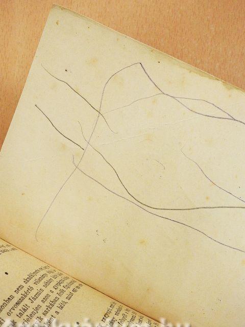 A tűzés mentén a fénykapcsok rozsdásodása miatt, néhány oldalon és a gerincen foltok találhatók. Több lap sarka hiányos. A kötés javított. A borító belső oldalán gyermekrajz látható.