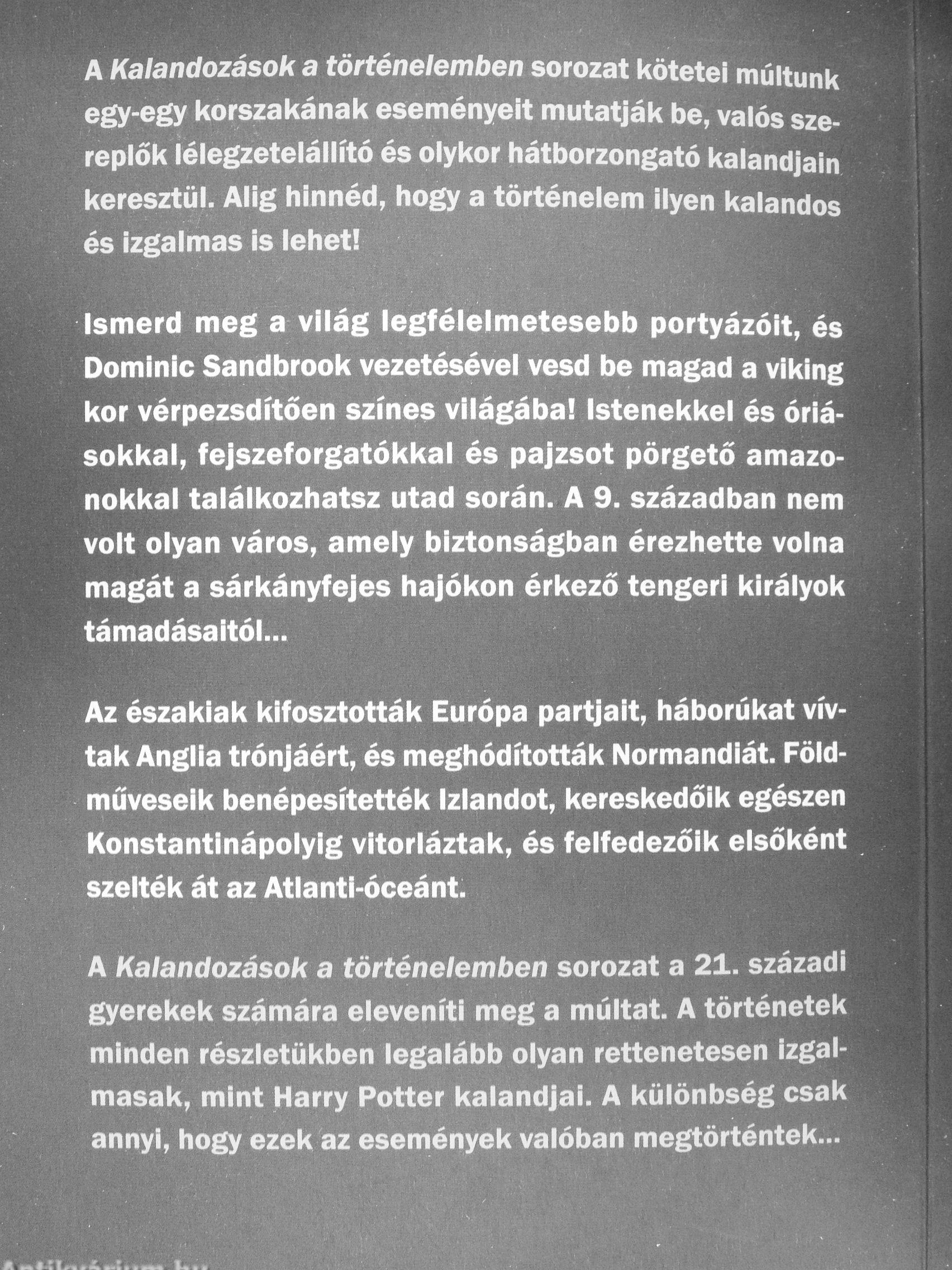 A Kalandozások a történelemben sorozat kötetei múltunk egy-egy kórszakának eseményeit mutatják be, valós szereplők lélegzetelállító és olykor hátborzongató kalandjain keresztül. Alig hinnéd, hogy a történelem ilyen kalandos és izgalmas is lehet! . ^ - 2