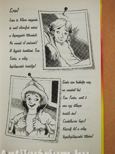 Lina és Klaro a bolhapiacon bukkan rá egy már nem élő feltaláló egészen különleges kerékpárjára. A legfeltűnőbb, hogy tud beszélni, de aztán előkerül az a papír, amiből kiderül, hogy ez bizony egy csodabicikli. Rengeteg bolondos trükköt tud, és ha kell, úszik vagy repül. Tom Turbó képességei még a hírhedt Don Dynamit érdeklődését is felkeltik