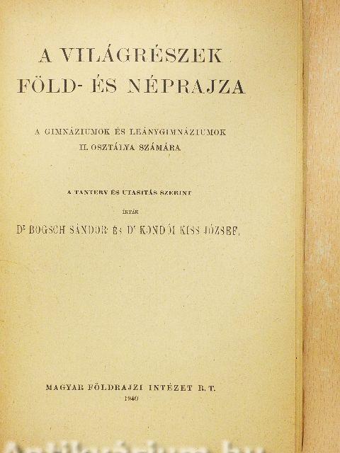 Megjegyzés: Fekete-fehér ábrákkal, fotókkal és térképekkel illusztrálva. A tanterv és utasítás szerint írták Dr. Bogsch Sándor és Dr. Kondódi Kiss József.