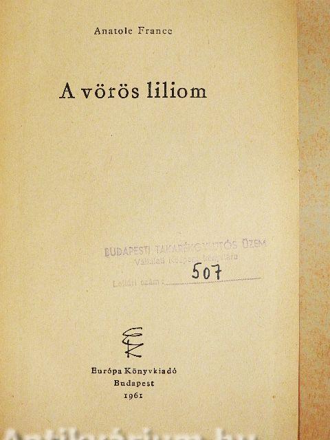 A vörös liliom, Anatole France egyik legérettebb regénye, máig is sok vitára ad okot, mégpedig mind a France-imádók, mind a France-ellenfelek táborában. Mindnyájan ismerjük a regény cselekményét, átlátszó jelképességét, s ma már majdnem három negyedszázaddal a mű megjelenése után, alig van kibogozhatatlan rejtély A vörös liliom keletkezésének s egyéni és történelmi hátterének szövevényében. S mégis alig van Anatole France-nak, a világos, a klasszikus, az "egyvonalú" Anatole France-nak titokzatosabb, sokrétűbb, s mondhatjuk: ellentmondásosabb könyve - bár az író, igaz, sosem félt, se könyveiben, se magatartásában az ellentmondásoktól, sőt éppen az ellentmondásokat tartotta legjellemzőbb és legemberibb vonásainak. Tudjuk, hogy a regényben alig történik egyéb, mint az, hogy Therese Martin-Belleme grófné, egy unatkozó szépasszony, unalmas férje, szalonélete és tétlensége elől menekülve, előbb egy nagyvilági gavallért választ, jobb híján, a kedvesének, aztán egy szobrászt, akivel...