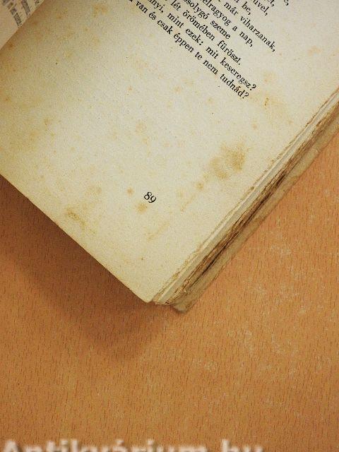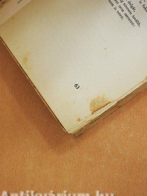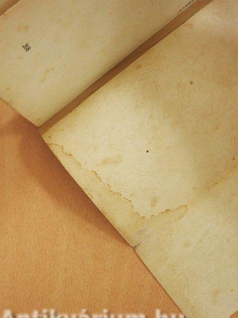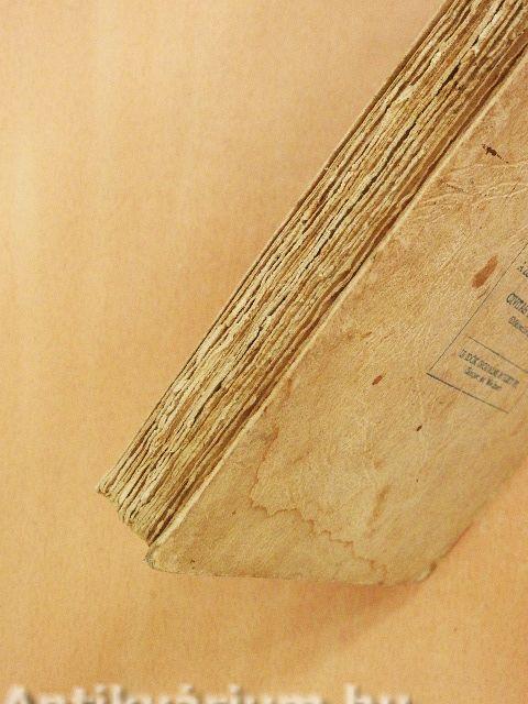 A gerinc megtört, a borító foltos. A lapélek egyenetlenek, foltosak. Több lap foltos.