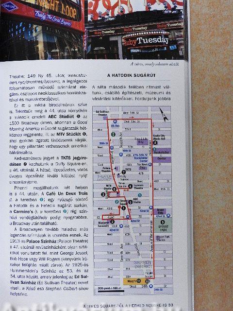 A Broadway neonfényei mindenkit elbűvölnek (2. útvonal). Szívjuk be a Times Square magabiztos légkörét, szerezzünk kedvezményes jegyeket a színházba, és éljük bele magunkat valamelyik, a híres Great White Way-en előadott darab cselekményébe.