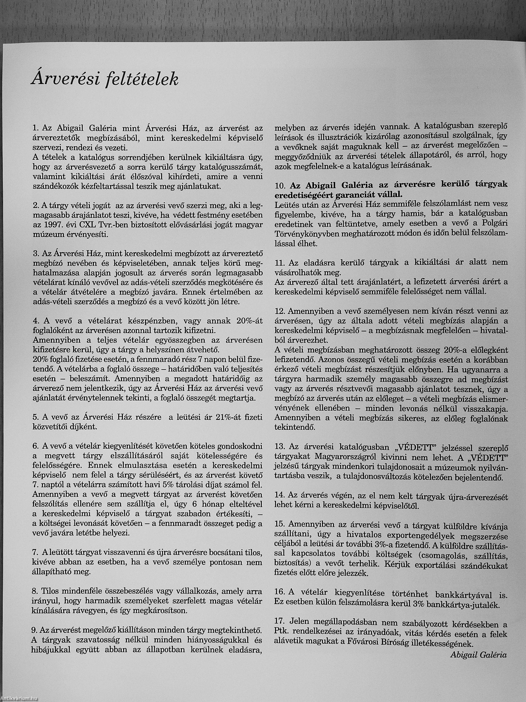 | Megjegyzés: | Színes fotókkal. Az árverést vezeti: Hajdú Katalin Anna és Szigeti Piroska |