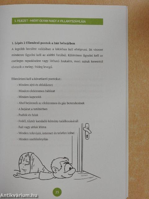 Néhány tipp, amit ebben a könyvben találtam de nem tűnt reálisnak, azt gondoltam a költségek szempontjából pénzt takaríthatunk meg, a feleségem : és én kipróbáltuk és egy hónap alatt nagy változásokat tapasztalhattunk. A számla 30% -kai csökkent az átlaghoz képest, 3 hónap alatt 1 számla költségei - le voltunk döbbenve! Most bevezettük a változásokat, az energiatakarékosságot és a számla csökkent!