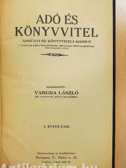 I. évfolyam/Adóügyi és könyvviteli szemle/A Magyar Könyvszakértők Országos Szövetségének hivatalos lapja