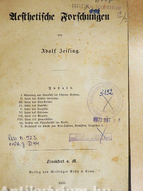Adolf Zeising műveinek az Antikvarium.hu-n kapható vagy előjegyezhető listáját itt tekintheti meg: Adolf Zeising könyvek, művek