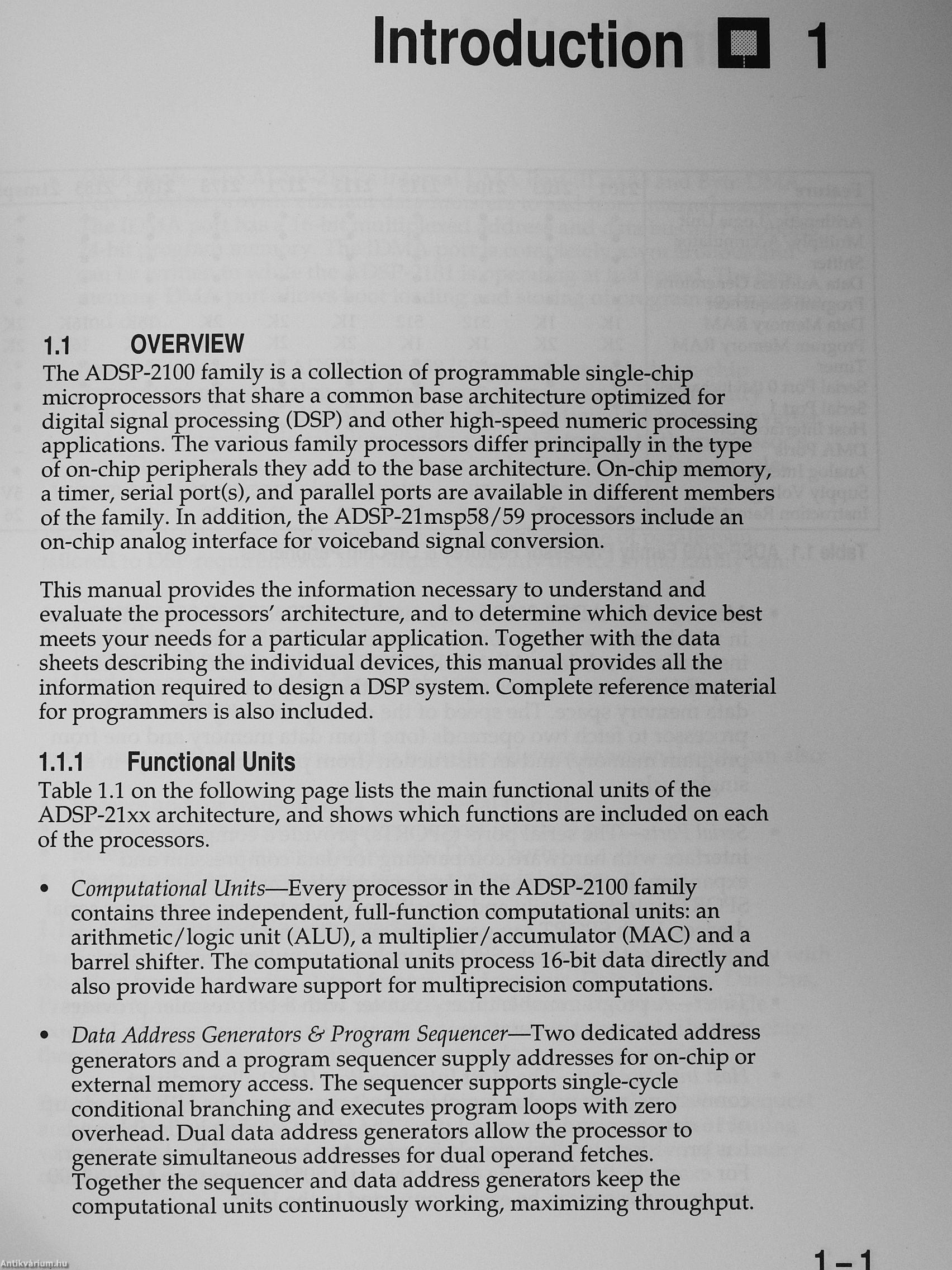 Digital signal processing is revolutionizing traditional analog applications In the areas g audio, video, imaging and communications, and is enabling new applications such<as video teleconferencing, noise cancellation, and speech recognition. With 25 years exp rience In real-world signal processing, both analog and digital. Analog Devices offers complete solutions for designers of signal processing systems: DSP microprocessors mixed-signal peripherals including A/D and D /A converters, and development and applications software. Based on this unique perspective on signal processing applic tions, the architecture of Analog Devices' DSP processors addresses five key require ments of digital signal processing: