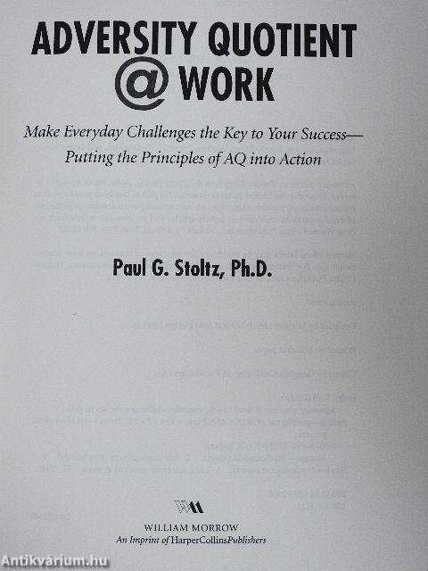 Adversity Quotient, or AQ, is a measure of one's ability to handle adversity. People who can't handle adversity become easily overwhelmed and emotional, then pull back and stop trying; those who handle adversity well become the leaders of today and tomorrow. Stoltz shows you not only how to measure your own AQ but how to improve it, and how to put these ideas to work for you and your organization. Based on the time-tested principles established by his first book,... Tovább