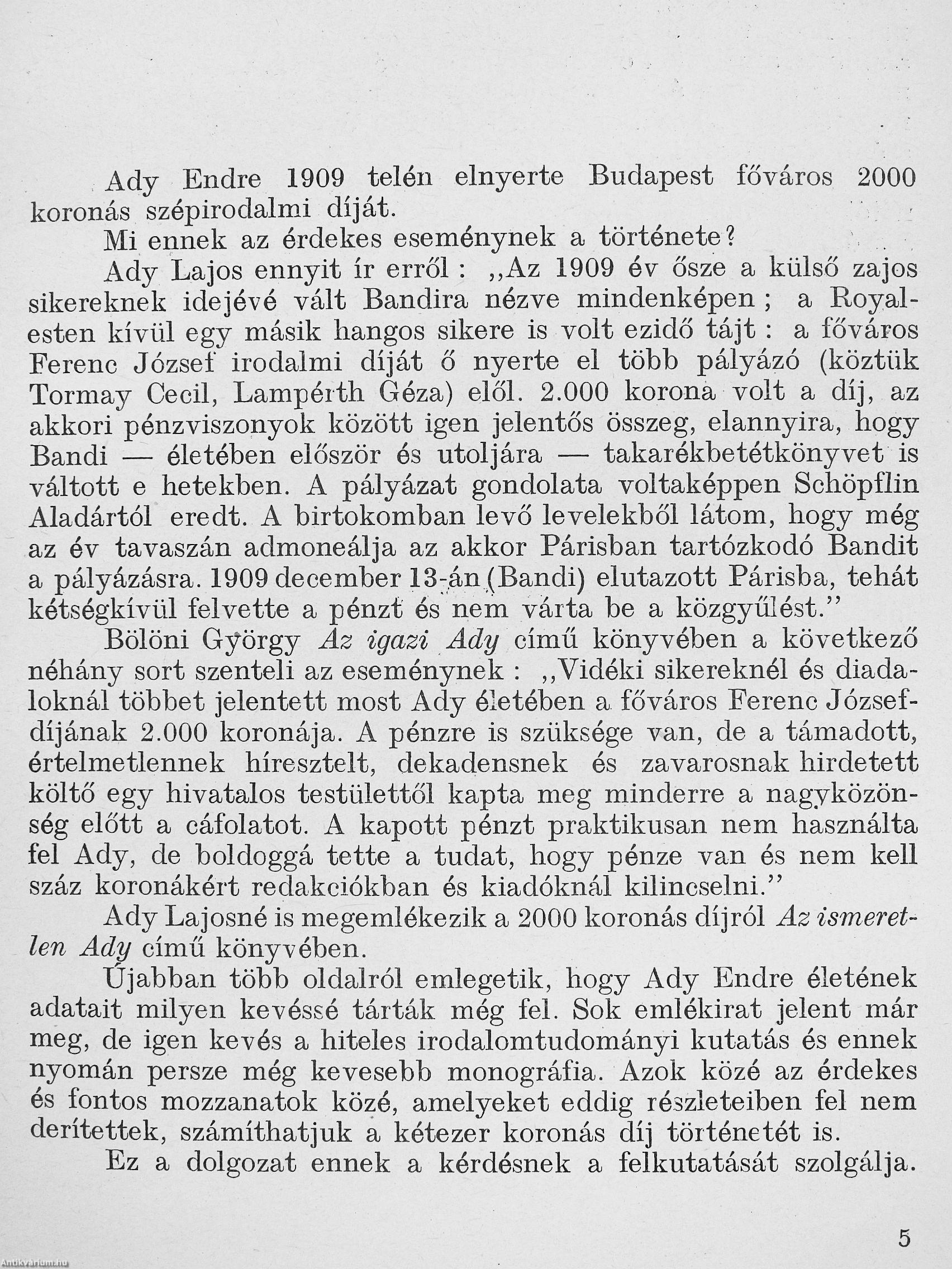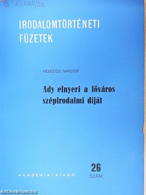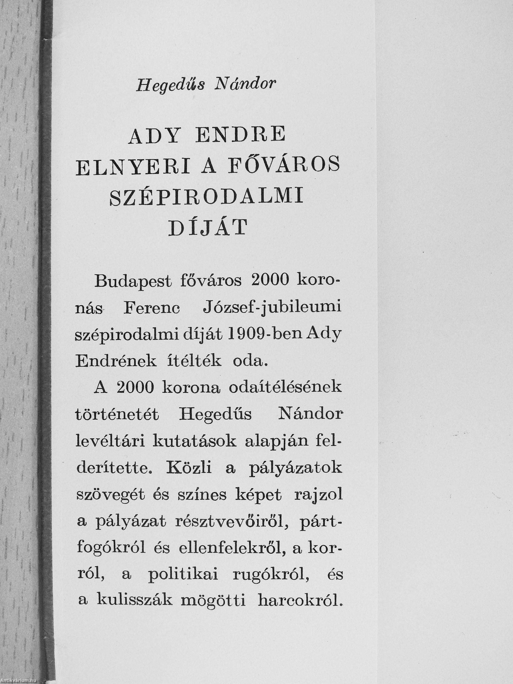 ADY ENDRE ELNYERI A FŐVÁROS SZÉPIRODALMI DÍJÁT
