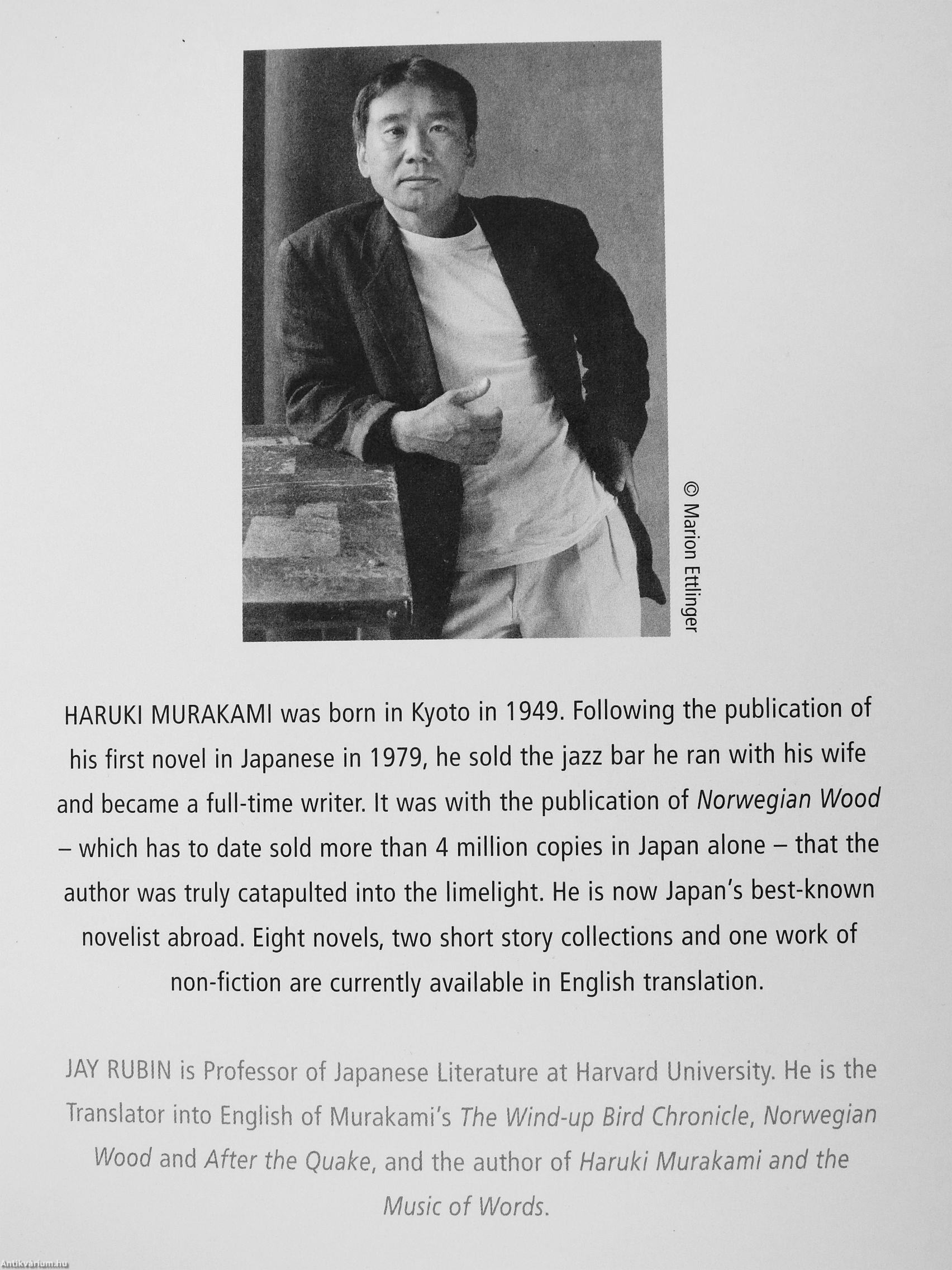 HARUKI MURAKAMI was born in Kyoto in 1949. Following the publication of his first novel in Japanese in 1979, he sold the jazz bar he ran with his wife and became a full-time writer. It was with the publication of Norwegian Wood - which has to date sold more than 4 million copies in Japan alone - that the author was truly catapulted into the limelight. He is now Japan's best-known novelist abroad. Eight novels, two short story collections and one work of non-fiction are currently available in English translation.