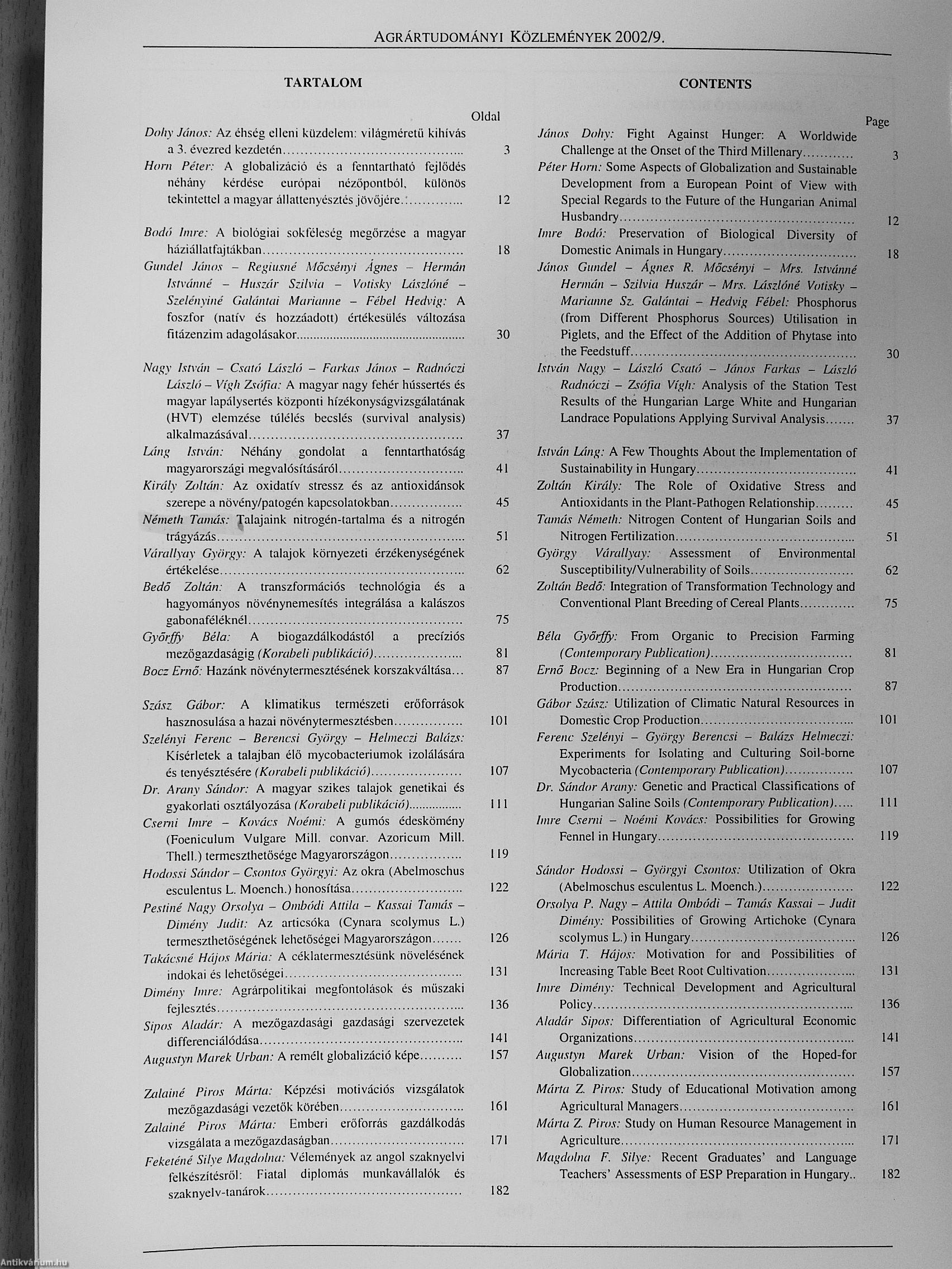 | Sorozatcím: | Agrártudományi Közlemények |