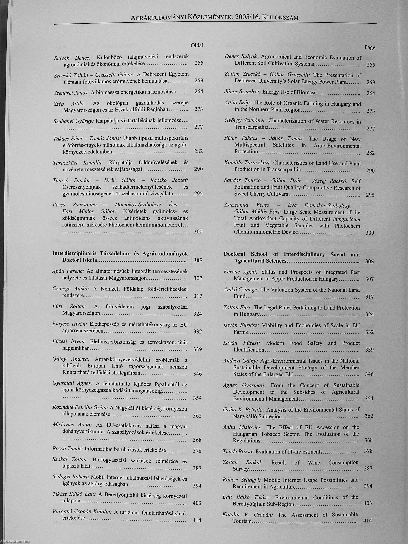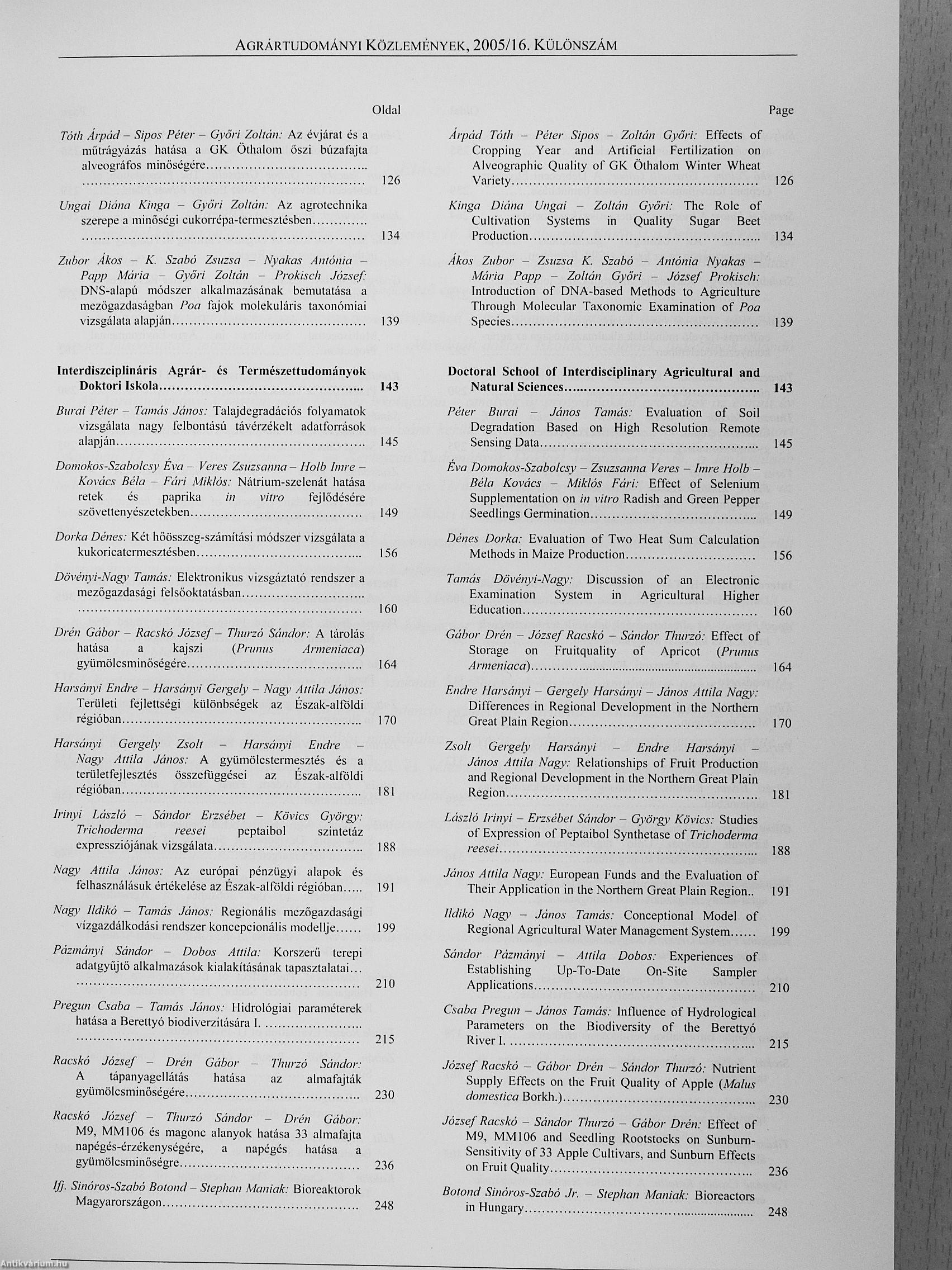 Agrártudományi közlemények 2005/16. Különszám Agrártudományi közlemények 2005/16. Különszám Agrártudományi közlemények 2005/16. Különszám