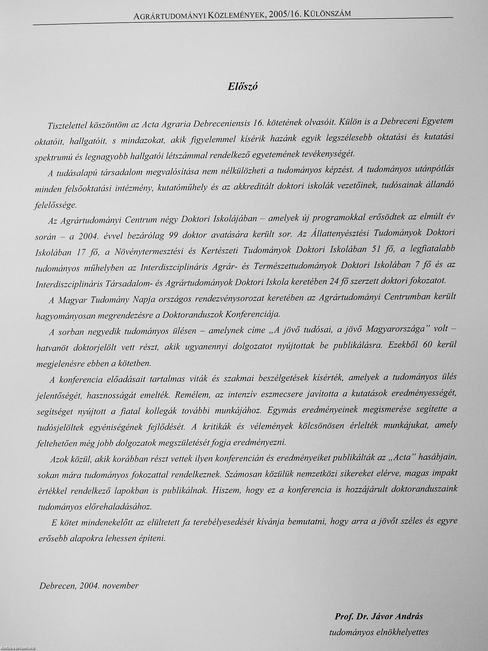 Kiadó: Debreceni Egyetem Agrártudományi Centrum