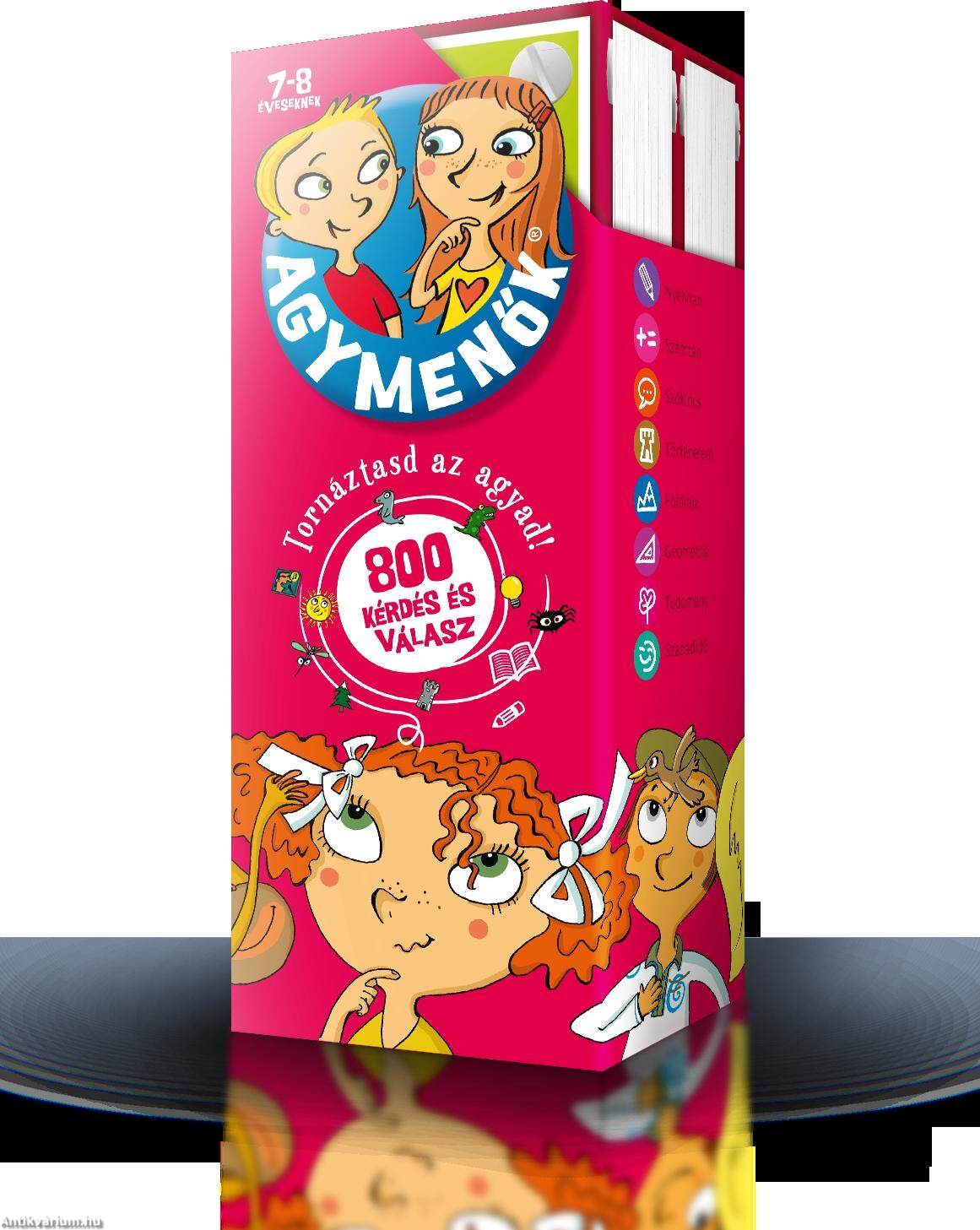 Tornáztasd az agyad!Szórakoztató és gondolkodtató kérdések és válaszok gyerekeknekAz Agymenők kártyacsomagok az 5-6, 6-7, 7-8, 8-9, 9-10 és 10-11 éves gyerekeknek készültek. A színes számtalan, az adott életkornak megfelelő érdekes feladattal, különböző témakörökben, a nyelvtantól, a tudományokon át a szabadidőig.