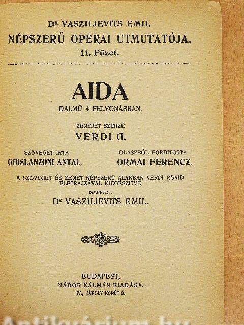 | Megjegyzés: | Kottákat tartalmaz. A szöveget és zenét népszerű alakban Verdi rövid életrajzával kiegészítve ismerteti Dr. Vaszilievits Emil. Röder C. G. G. m. b. H. műintézete nyomása, Lipcse-Budapest. |