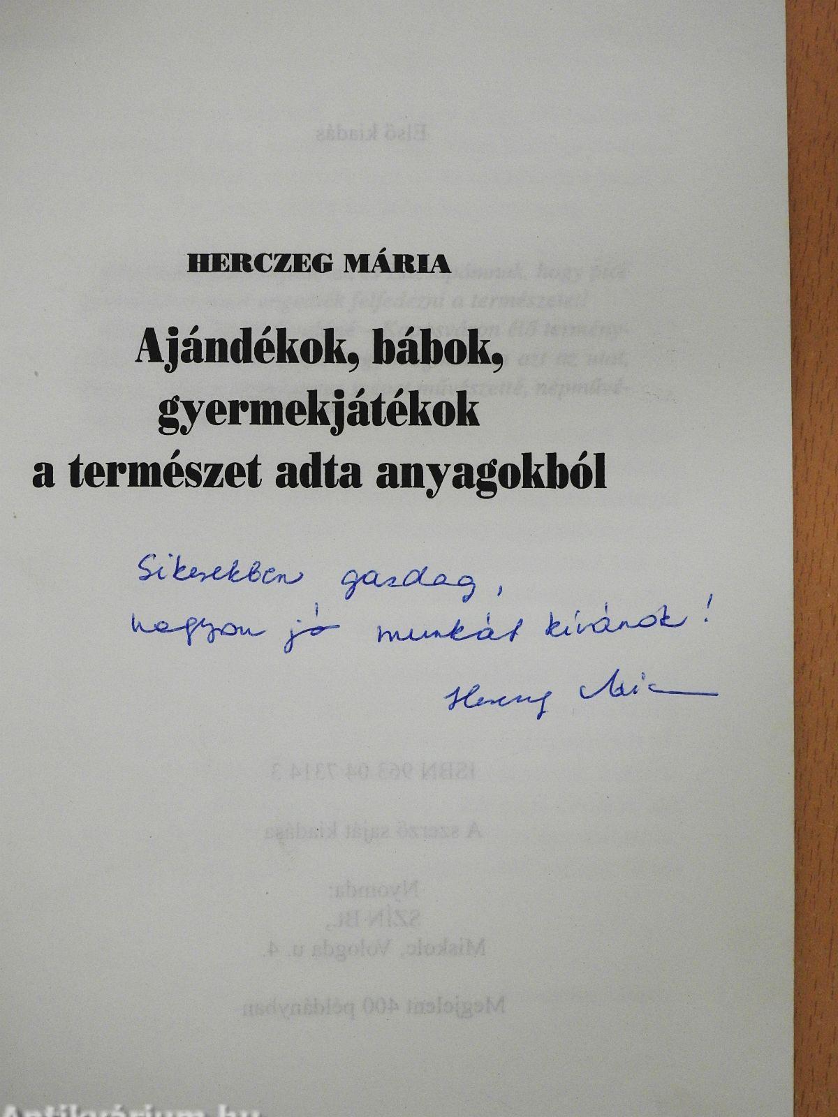 | Megjegyzés: | Herczeg Mária szerző által dedikált példány. Fekete-fehér fotókkal, illusztrációkkal. 400 példányban jelent meg. |
