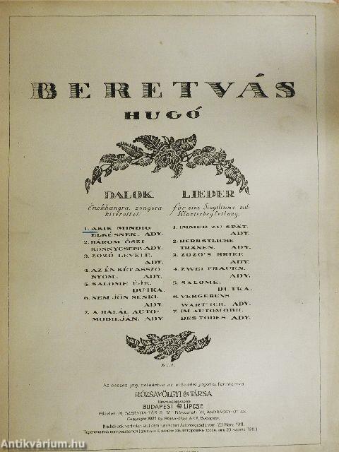 Megjegyzés: Kotta. Nyomtatta Pesti Könyvnyomdia R. T., Budapest.