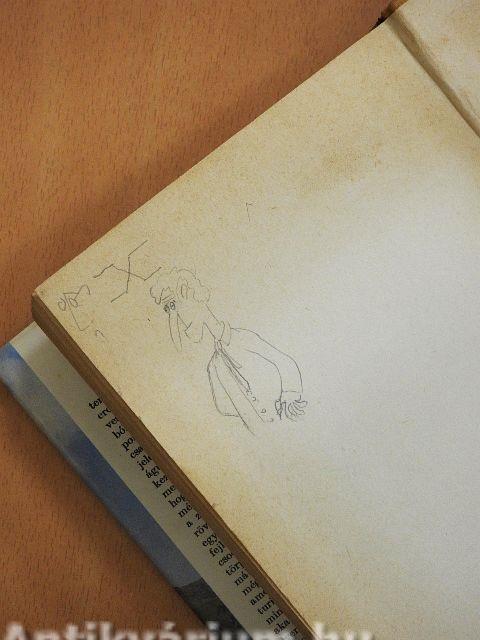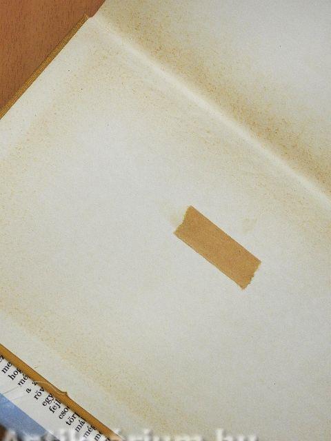 A védőborító szakadt, a borító belső oldalán ragasztás látható. Egy lapon rajz látható.