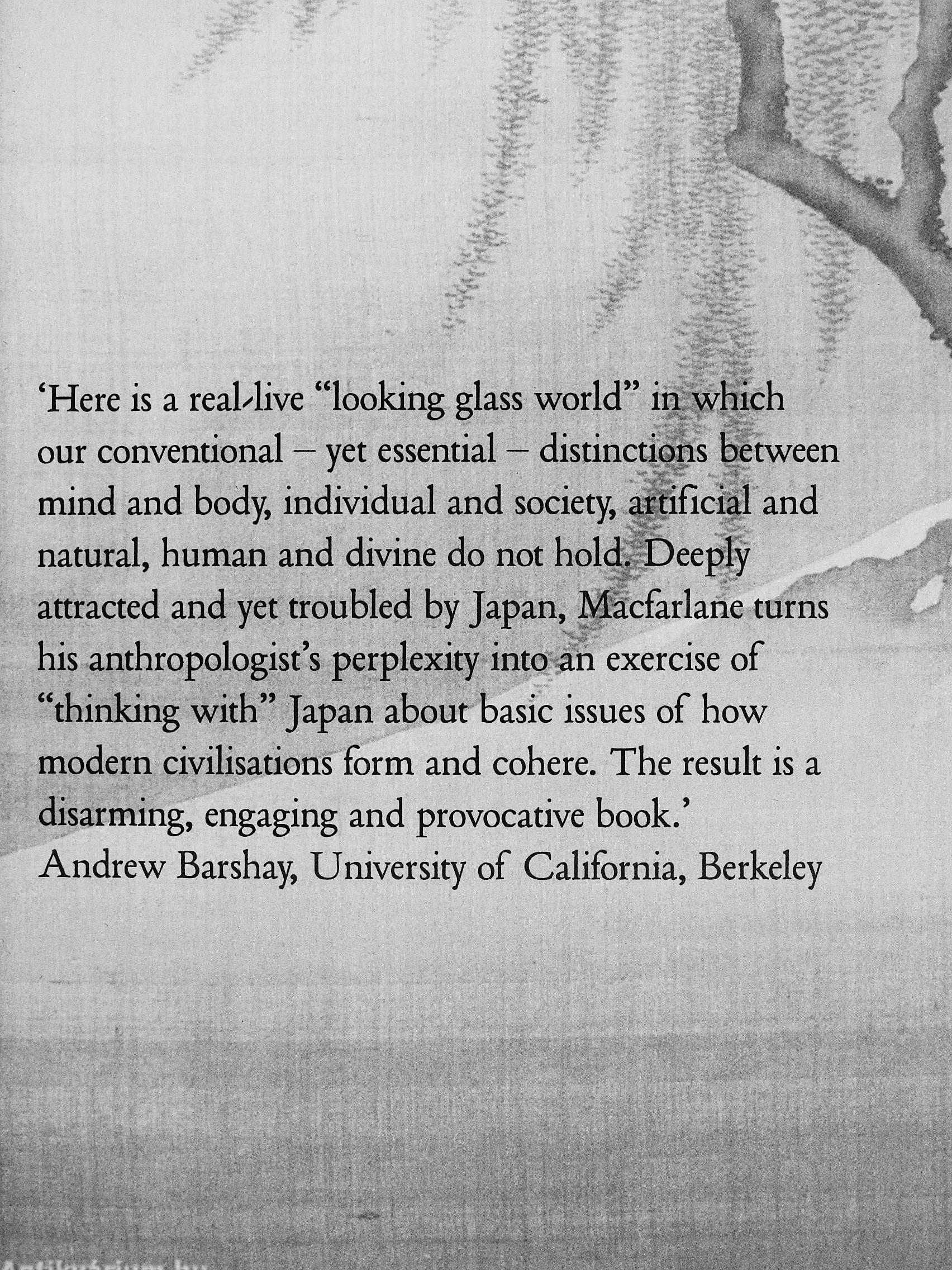 'Here is a real/live "looking glass world" in which our conventional - yet essential — distinctions between mind and body, individual and society, artificial and natural, human and divine do not hold. Deeply attracted and yet troubled by Japan, Macfarlane turns his anthropologist's perplexity into an exercise of "thinking with" Japan about basic issues of how modern civilisations form and cohere. The result is a disarming, engaging and provocative book.' Andrew Barshay, University of California, Berkeley