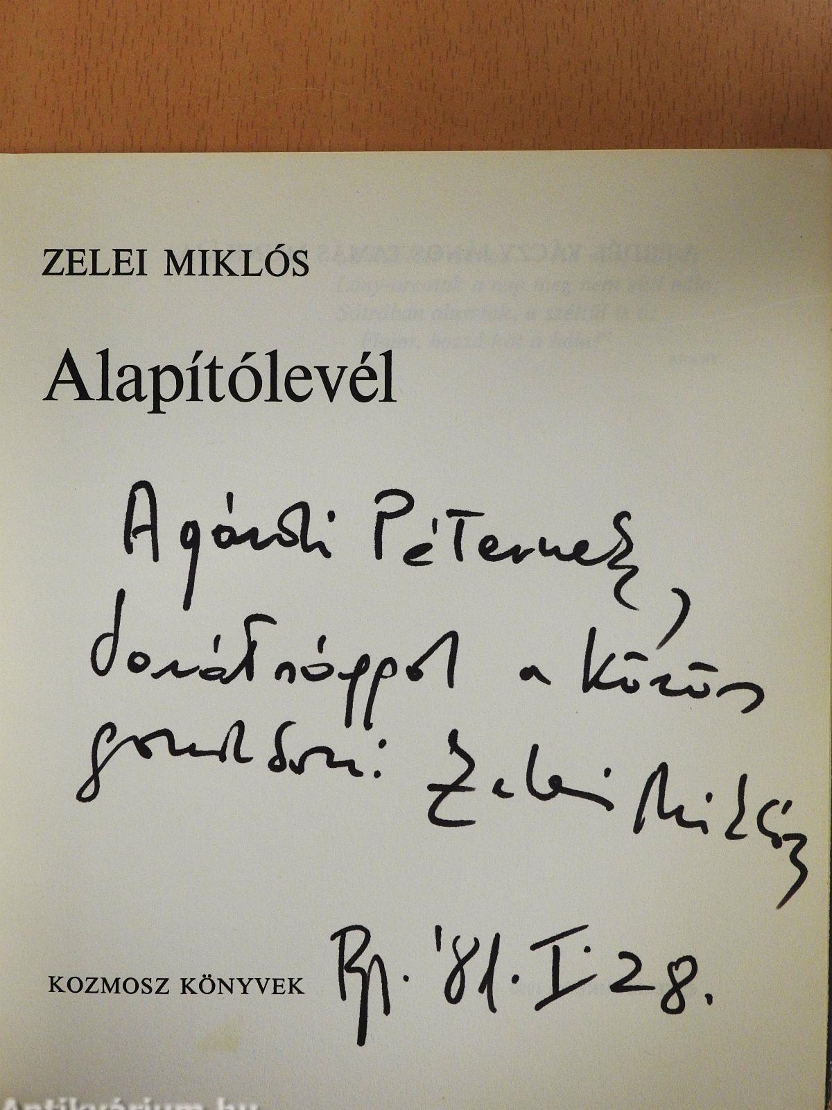 | Megjegyzés: | Zelei Miklós szerző által dedikált példány. |