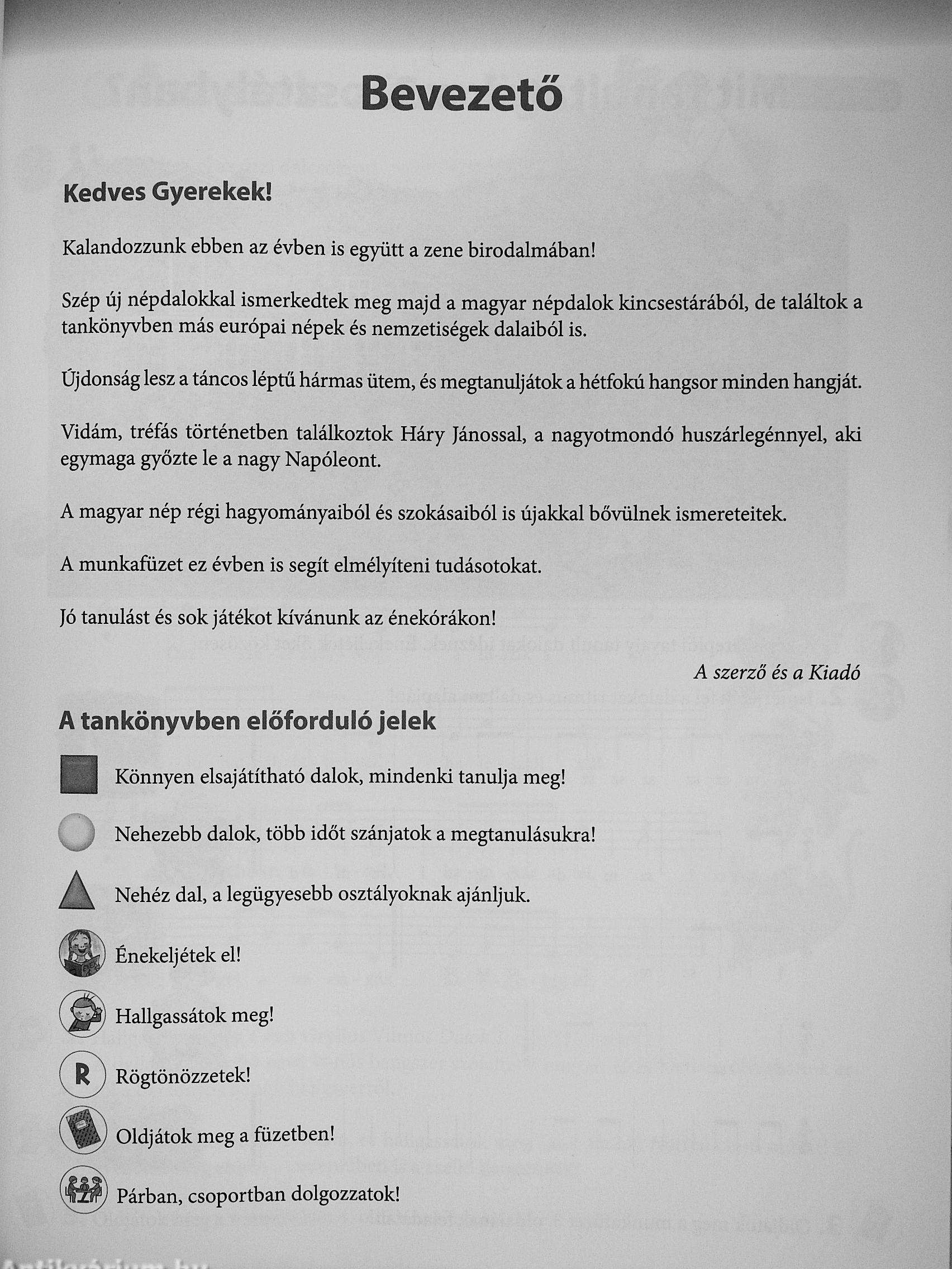 | Megjegyzés: | Kottákkal, fekete-fehér és színes illusztrációkkal. Tankönyvi szám: AP-042005. Első kiadás. Tartós tankönyv. |