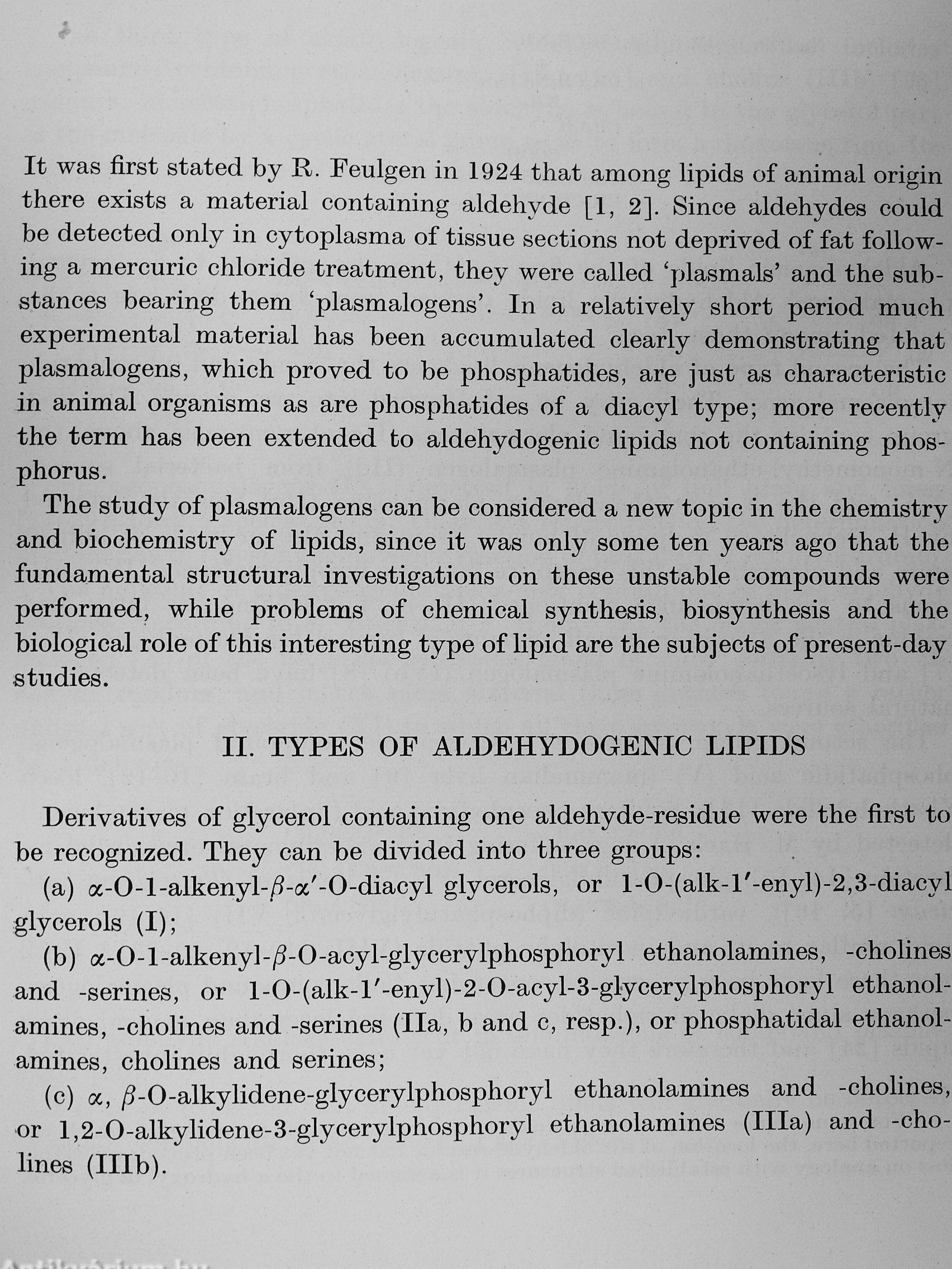 The present volume of the series contains three monographs, written by distinguished researchers of the organic compounds treated. The study by N. A. Preohra-zhenskii and O. A. Parjenov deals with the different types of natural aldehydogenic lipids, such as the natural plasmalogens. The methods of isolation and analysis of plasmalogens and acetalphosphatides are discussed. Great emphasis is laid on the synthesis of this interesting class of compounds; the elucidation of the structure of these substances, their metabolism and the biological role of plasmalogens are described.