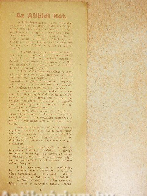 | Megjegyzés: | Nyomtatta a Friss Ujság-nyomda, Hódmezővásárhely. Fekete-fehér képekkel. Korabeli hirdetésekkel. |