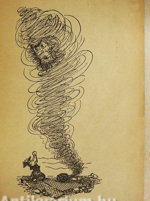 Volt egyszer egy szegény halász, akinek az volt a szokása, hogy naponként csak négyszer merítette hálóját a vízbe s ez éppen elég volt, hogy magának és három leányának a szükséges élelmet megszerezze. Történt egyszer, alkonyattájt, hogy egy döglött szamarat fogott ki a vízből. Igen elszomorodott ezzel a szegény halász, mert nemcsak a reményében csalódott meg, hanem szétszakadt a hálója is. Nagy nehezen újra kötötte a háló szétszakadt részeit, aztán ismét beleeresztette a vízbe s kevés idő múlva egy nagy fazekat fogott ki, amely homokkal volt tele." Vissza