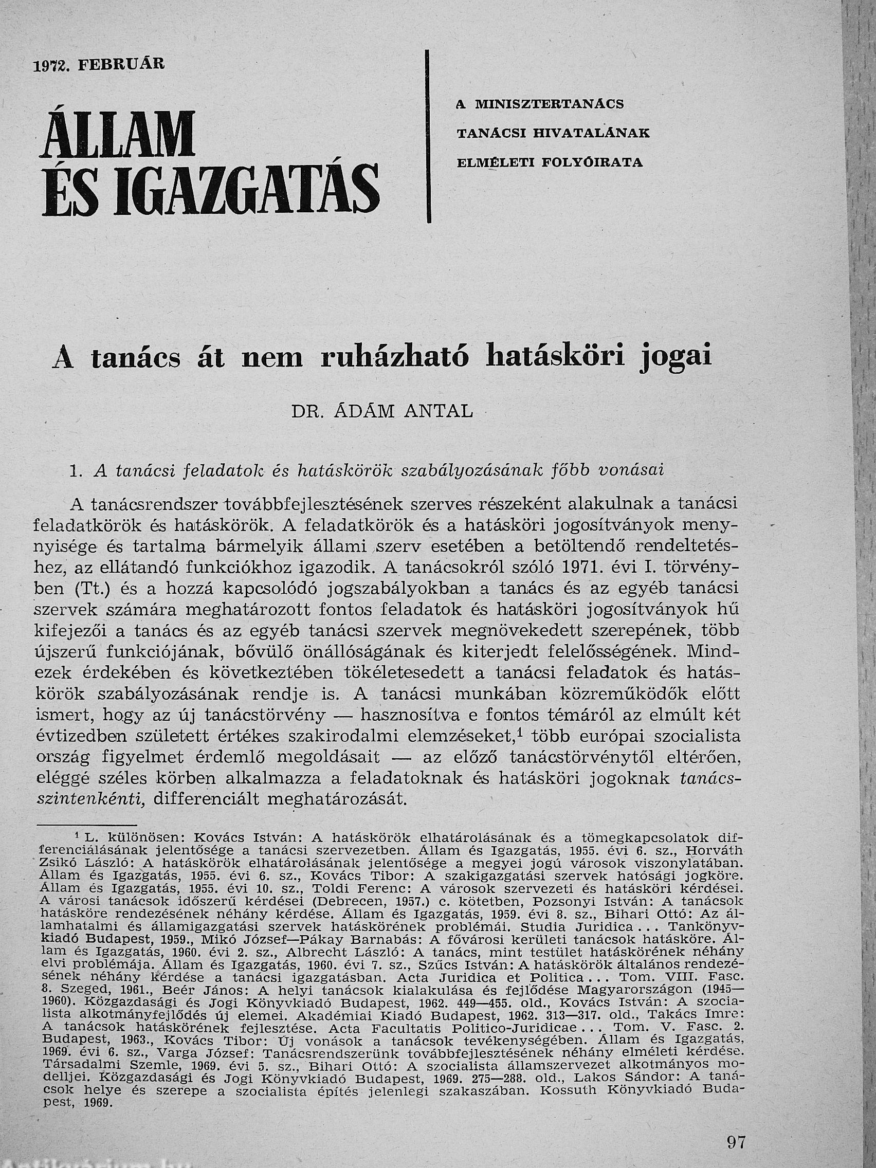 Állam és igazgatás 1972. február