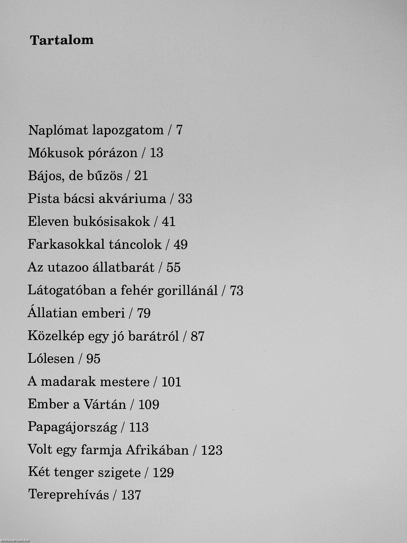 Izgalmas állatokkal és ismert, ám sokszor inkább félreismert természetkutatókkal taláilkozunk e kön5rv^ lapjain, néhol kacagtató, máskor szomorú - de mindig igaz történetekben.