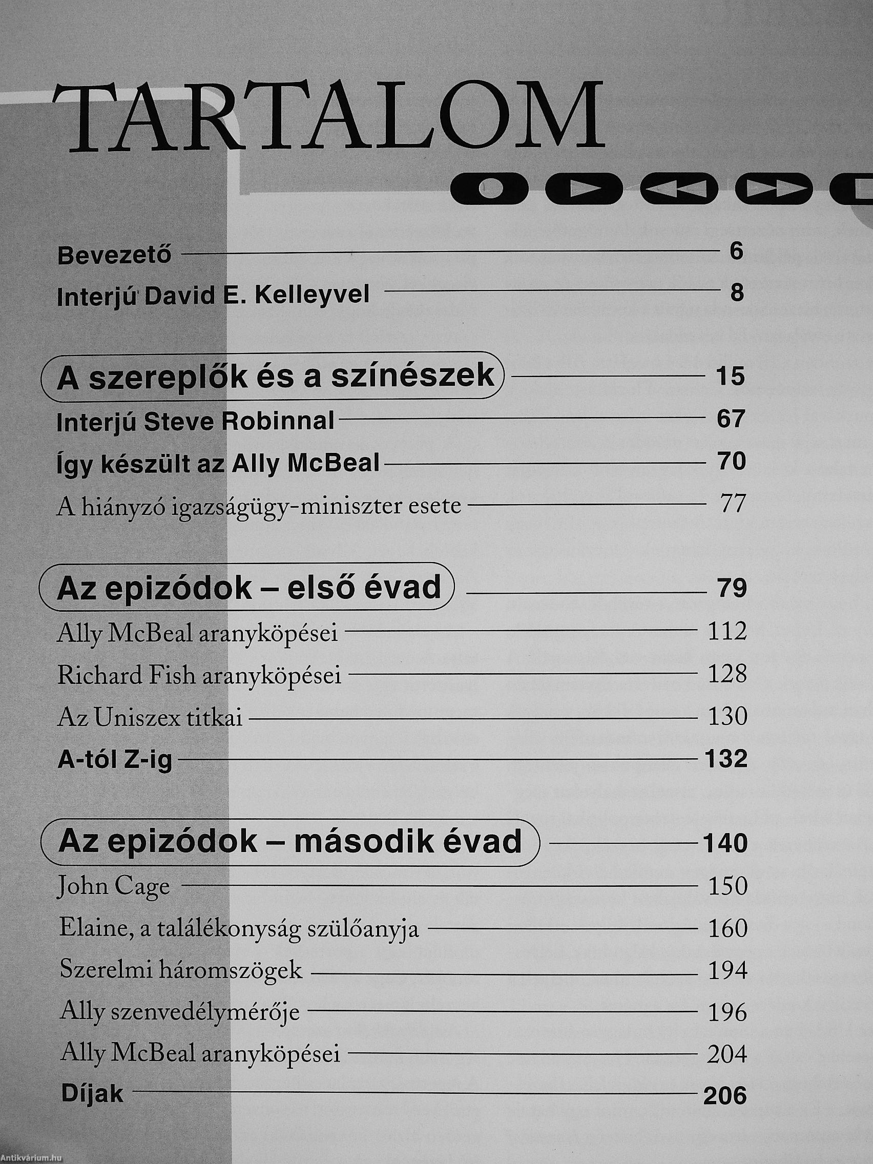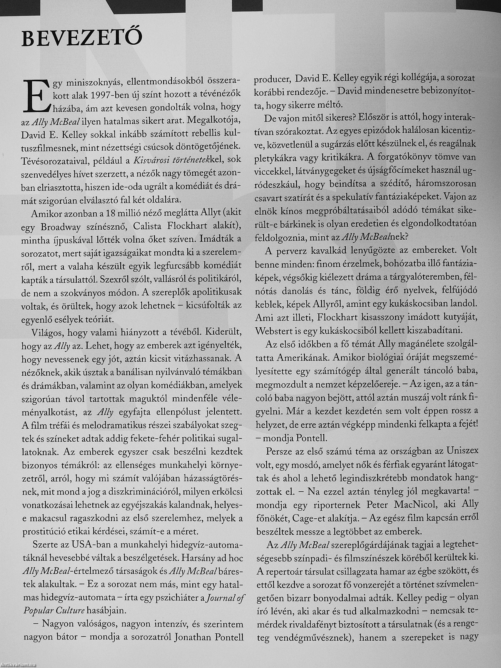 • Külön rész szakmáról és magánéletről - Ally szerelmeiről, a legemlékezetesebb ügyekről és ügyfelekről, a szerelmi háromszögről Billyvel és Georgiával, valamint az Uniszex nevű mosdóban folyó életről