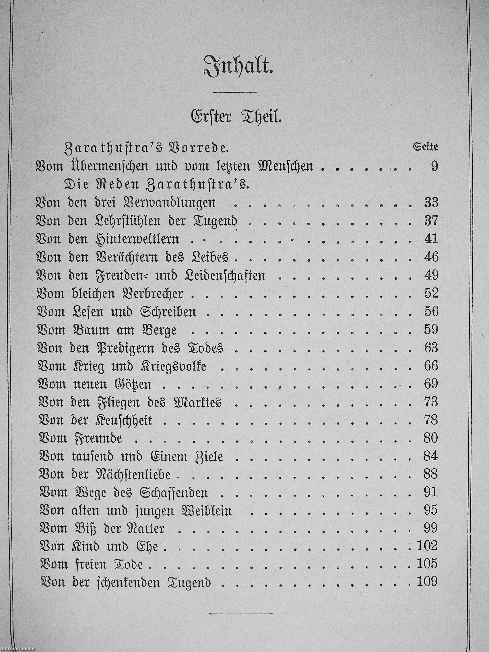 | Megjegyzés: | Gótbetűs kiadás. Friedrich Nietzsche fekete-fehér portréjával. |