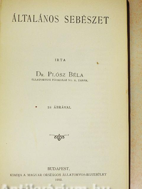 | Megjegyzés: | 28 fekete-fehér ábrával illusztrált. Írta: Dr. Plósz Béla állatorvosi főiskolai ny. r. tanár. Nyomtatta a "Pátria" irodalmi váll. és nyomdai r.-t., Budapest. |
