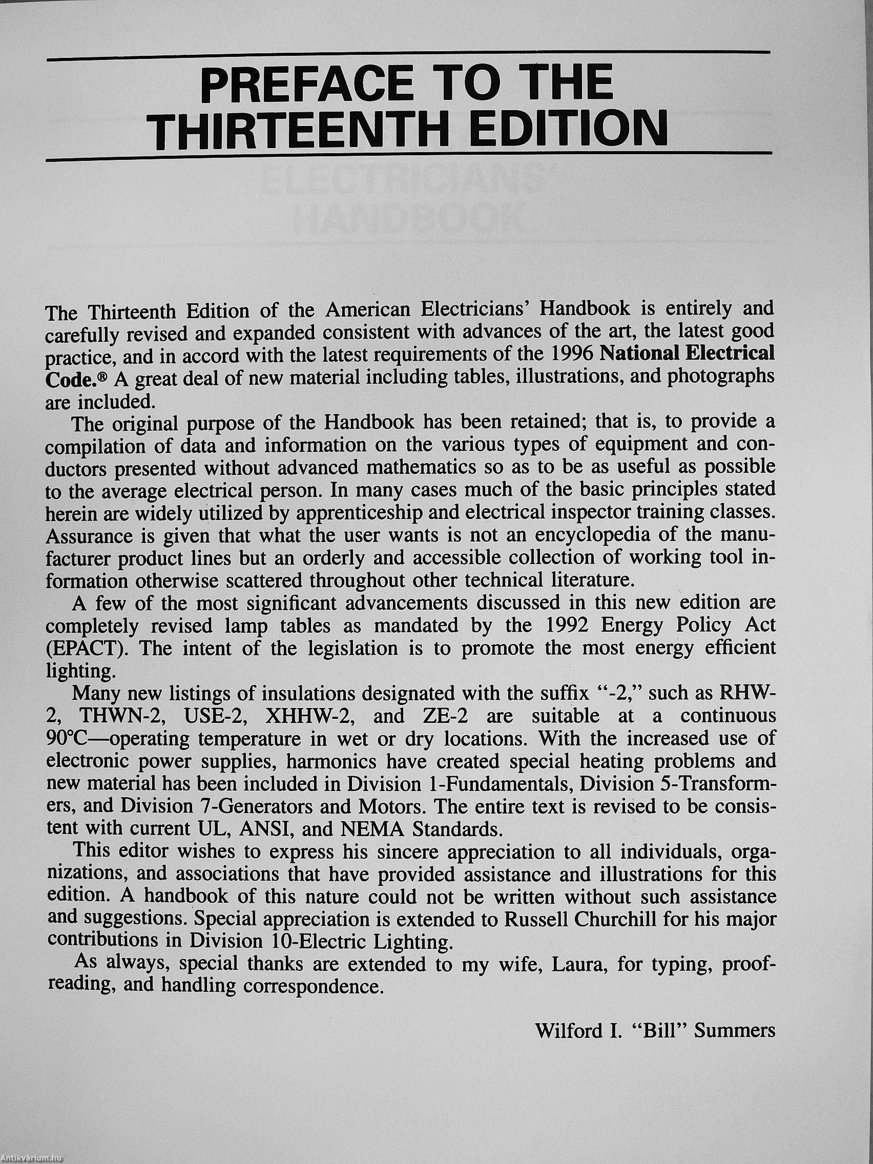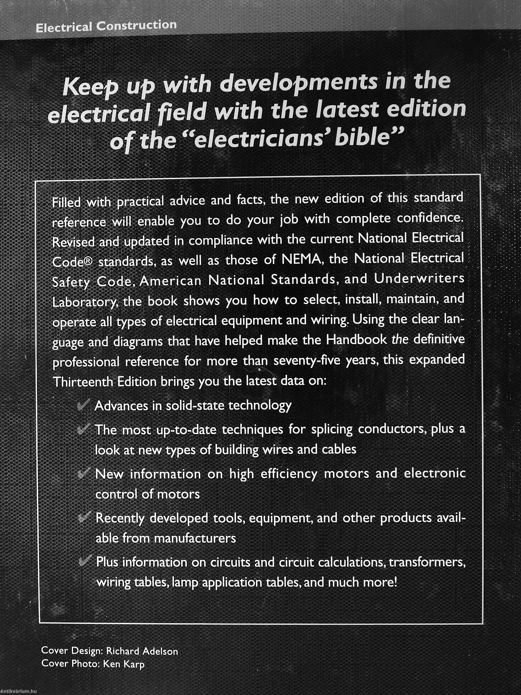 Filled with practical advice and facts, the new edition of this standard reference will enable you to do your job with complete confidence. Revised and updated in compliance with the current National Electrical Code® standards, as well as those of NEMA, the National Electrical: Safety Code, American National Standards, and Underwriters Laboratory, the book shows you how to select, install, maintain, and operate all types of electrical equipment and wiring. Using the clear language and diagrams that have helped make the Handbook the definitive professional reference for more than seventy-five years, this expanded Thirteenth Edition brings you the latest data on:
