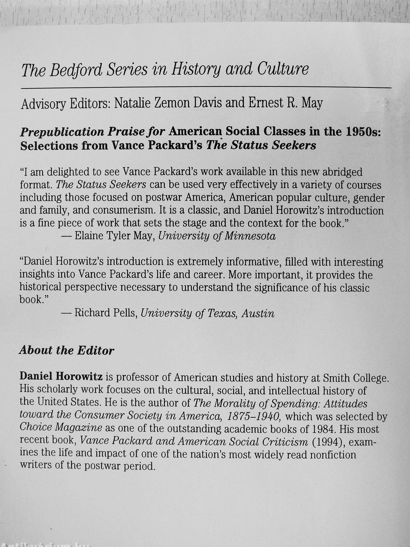 "I am delighted to see Vance Packard's work available in this new abridged format. The Status Seekers can be used very effectively in a variety of courses including those focused on postwar America, American popular culture, gender and family, and consumerism. It is a classic, and Daniel Horowitz's introduction is a fine piece of work that sets the stage and the context for the book."