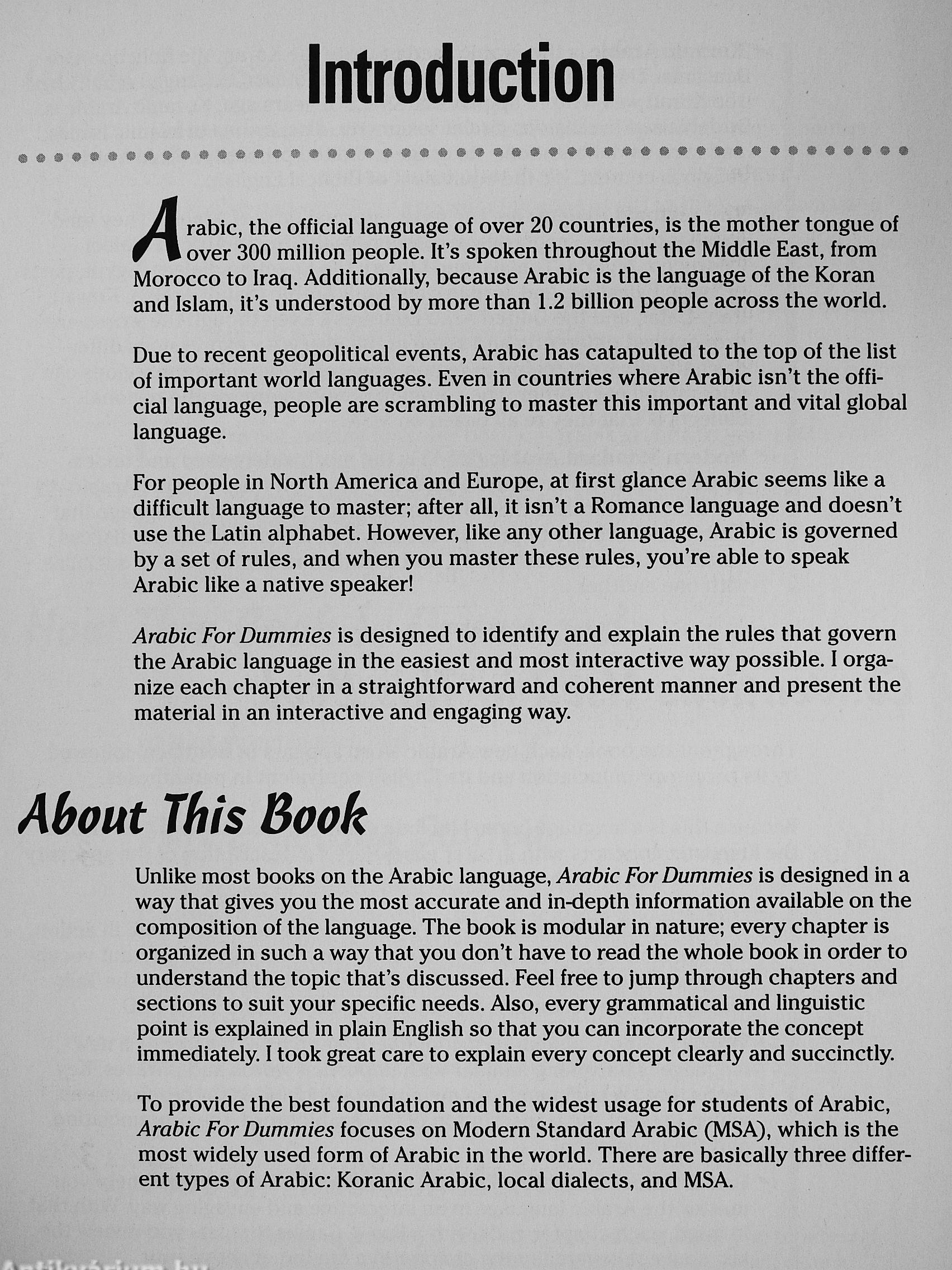 This unintimidating guide will help you start speaking Modern Standard Arabic — beginning today! Whether you're a student, a traveler, or you work in business or government, you'll find it's packed with practical lessons, cultural facts, and handy references — including coverage of written Arabic, an Arabic-English mini-dictionary, lists of vital verbs, and morel