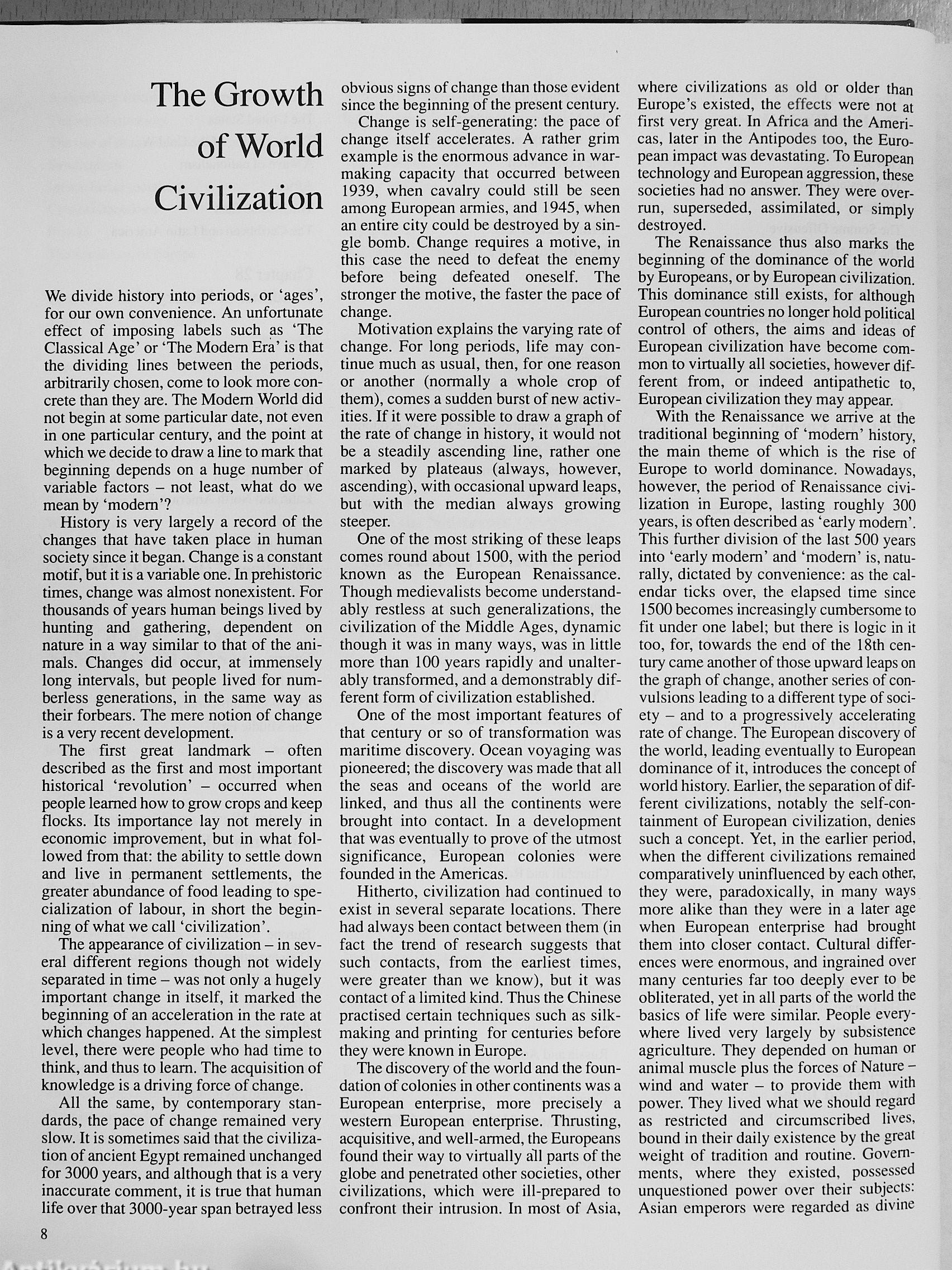 That period begins with two revolutions -the French Revolution which was to transform relations between people and governments, and the Industrial Revolution, which was to transform almost every other aspect of people's lives. These great and ever-accelerating changes took place in the West, but they spread to other parts of the world too, so that within 200 years few people were unaffected by them. We have now reached a point at which, many people believe, the enormous material advance that began with the Industrial Revolution has outstripped the capacity of the Earth to sustain it. Perhaps the era of rapid economic progress is coming to an end. That era, an astonishing, eventful, heroic - and disastrous -age, is the subject of this book.