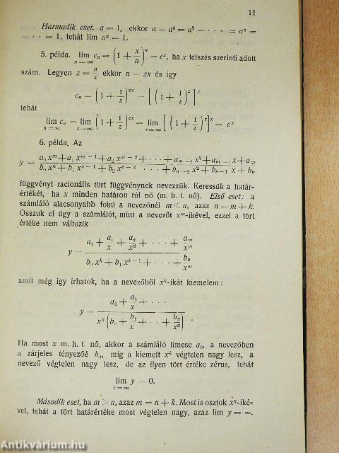 7. §. Határértékek meghatározása. (Az e szám bevezetése.) 7