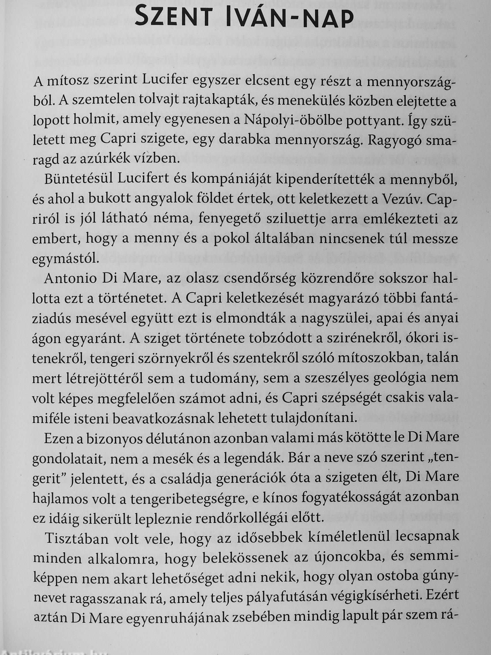 Hugó, a történelemtanár egy skandináv turistákból álló csoporttal Caprira utazik egy gasztronómiai és kulturális kirándulásra a Belmonte Travels szervezésében, amelynek idegenvezetője az elbűvölő Lara. Remek a hangulat, a csoport pompásan érzi magát a földi paradicsomban, amíg árny nem vetül a bájos szigetre: a hírhedt Tiberius-szikla alatt egy holttestre bukkannak a tengerben. Vajon ki lehet a halott, és miért van a zsebében a Belmonte Travels prospektusa? Talán egy kígyó kúszott be az édenkertbe? Vagy akad olyan az utasok között, aki nem a festői sziget nyújtotta szépségekért utazott Caprira?